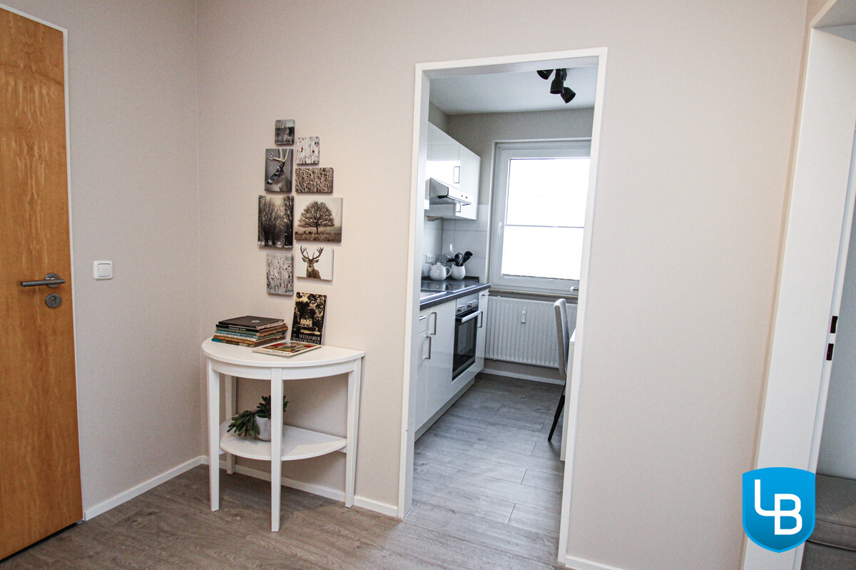 Auf ca. 53 qm Wohnfläche erwartet Sie hier ein großzügiges und helles Wohnzimmer mit Blick ins Grüne. Vom Wohnzimmer aus haben Sie Zugang zu dem kleinen Zimmer, welches sich gut als Esszimmer oder Büro eignen würde. Das Schlafzimmer ist lichtdurchflutet und bietet ausreichend Platz. Die Einbauküche ist mit Elektrogeräten ausgestattet und lässt keine Wünsche offen. Das Wohn- und Schlafzimmer, der Flur und die Küche ist mit Design-Vinylboden ausgestattet. Das Badezimmer ist mit einer bodentiefen Dusche versehen, hell gefliest und modern gestaltet. Die Wohnung ist komplett möbliert und mit allem ausgestattet, was das tägliche Leben bedarf. Diese Wohnung ist die ideale Wahl für alle, die eine komfortable und moderne Wohnlösung suchen. Egal ob Single, Paar oder Pendler! Die genaue Raumaufteilung entnehmen Sie bitte der Grundrisszeichnung. Mit dem Personenaufzug gelangen Sie bequem in Ihre Wohnebene und erleben barrierefreies Wohnen. Die gesamte Wohnanlage ist sehr gepflegt und überzeugt mit ihrer grünen Umgebung. Eingebettet zwischen Wald und See bietet diese Immobilie ein hohes Maß an Erholung und Entspannung. Auch Ihre Wäsche findet aktuell im separaten Waschkeller mit münzbetriebenen Waschmaschinen und Trockner ihren Platz. Die Nutzung der Waschmaschinen und Trockner ist kostenpflichtig und nicht Bestandteil/Anspruch der Mietsache. Das Haus beherbergt im Erdgeschoss eine kleine Schwimmhalle und einen Spa-Bereich, welche sich aktuell im "Dornröschenschlaf" befinden. Für diese kleine Wellness-Oase soll in baldiger Zukunft ein neuer Betreiber gefunden werden. Die Physiotherapie ist hiervon nicht betroffen und freut sich weiterhin auf nette Kunden/Patienten. Des Weiteren ist geplant, die leerstehende Ladenfläche im Erdgeschoss wieder zu beleben. Hier stellen sich die Eigentümer der Wohnanlage einen kleinen Kiosk oder ähnliches vor. Auch das neben dem Haupthaus gelegene Restaurant und der kleine Friseursalon suchen derzeit neue Betreiber.