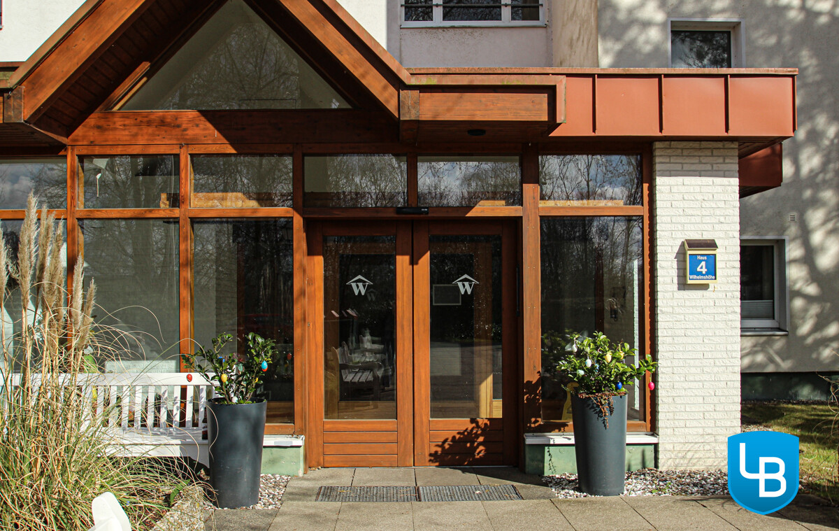 Das Haus beherbergt im Erdgeschoss eine kleine Schwimmhalle und einen Spa-Bereich, welche sich aktuell im "Dornröschenschlaf" befinden. Für diese kleine Wellness-Oase soll in baldiger Zukunft ein neuer Betreiber gefunden werden. Die Physiotherapie ist hiervon nicht betroffen und freut sich weiterhin auf nette Kunden/Patienten. Des Weiteren ist geplant, die leerstehende Ladenfläche im Erdgeschoss wieder zu beleben. Hier stellen die Eigentümer der Wohnanlage sich einen kleinen Kiosk oder ähnliches vor. Auch das neben dem Haupthaus gelegene Restaurant und der kleine Friseursalon suchen derzeit neue Betreiber.