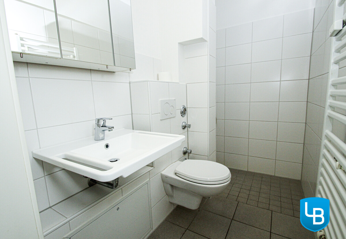 Auf ca. 32 qm Wohnfläche erwartet Sie hier ein großzügiges und helles Wohn-/Schlafzimmer. Die kleine Küche ist mit einer Einbauküche ausgestattet und lässt keine Wünsche offen. Im Wohnbereich und in der Küche ist Design-Vinylboden verlegt. Das innenliegende Badezimmer ist mit einer bodentiefen Dusche versehen, hell gefliest und modern gestaltet. Die genaue Raumaufteilung entnehmen Sie bitte der Grundrisszeichnung.