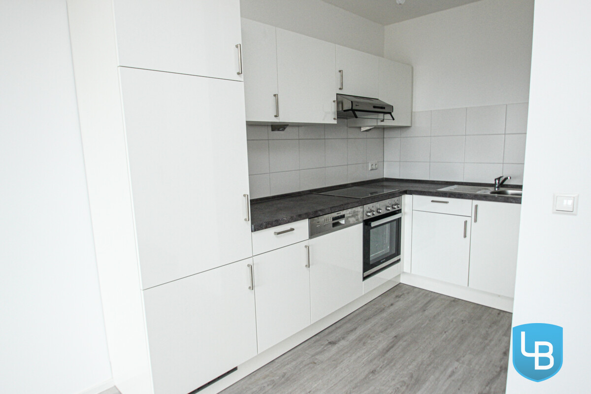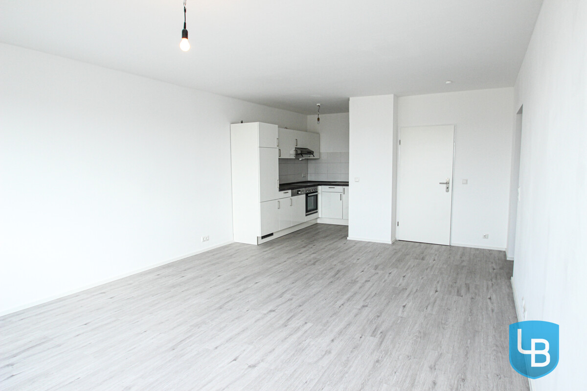 + Renovierte 2-Zimmer Wohnung im 5. OG + Lichtdurchflutetes Wohnzimmer mit offener Wohnküche + Einbauküche mit Elektrogeräten + Hauswirtschaftsraum mit Waschmaschinenanschluss + Großzügiges Schlafzimmer + Innenliegendes Badezimmer mit bodentiefer Dusche