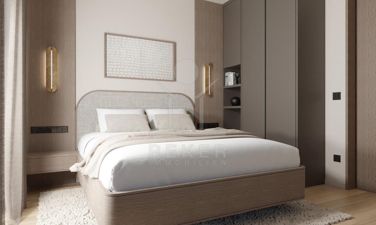 Das Gebäude ist Teil einer edlen, geschlossenen Wohnanlage mit fünf Häusern. Sie erinnert an ein kleines Dorf. Zwei separate Treppenhäuser strukturieren die neun Wohnungen klar und sorgen für angenehme Privatsphäre. Jede Einheit verfügt über zwei Außenstellplätze und einen eigenen Abstellraum, praktisch und komfortabel. Gepflegte Grünflächen rahmen das Ensemble ein und unterstreichen den ruhigen, hochwertigen Charakter. Die Fertigstellung ist für das Frühjahr 2026 vorgesehen.