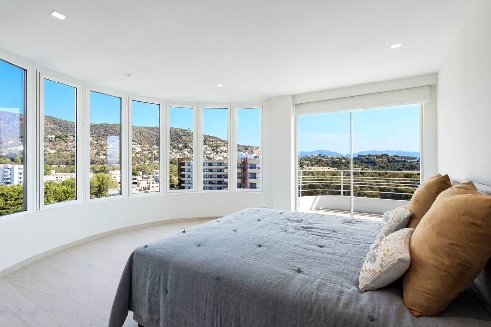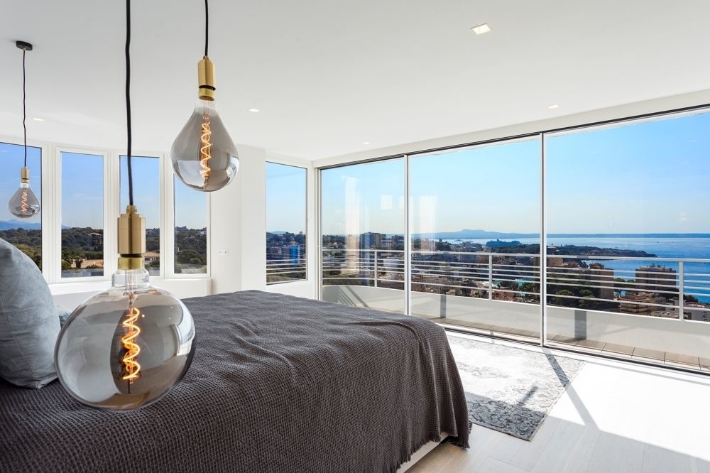 Inspirierender Blick auf das Meer, das Castell de Bellver, den Hafen, die Stadt und die malerische Küstenlinie. Den Flughafen Palma erreicht man in ca. 12 Kilometern.