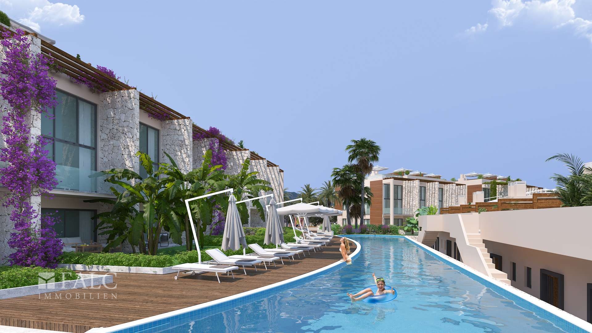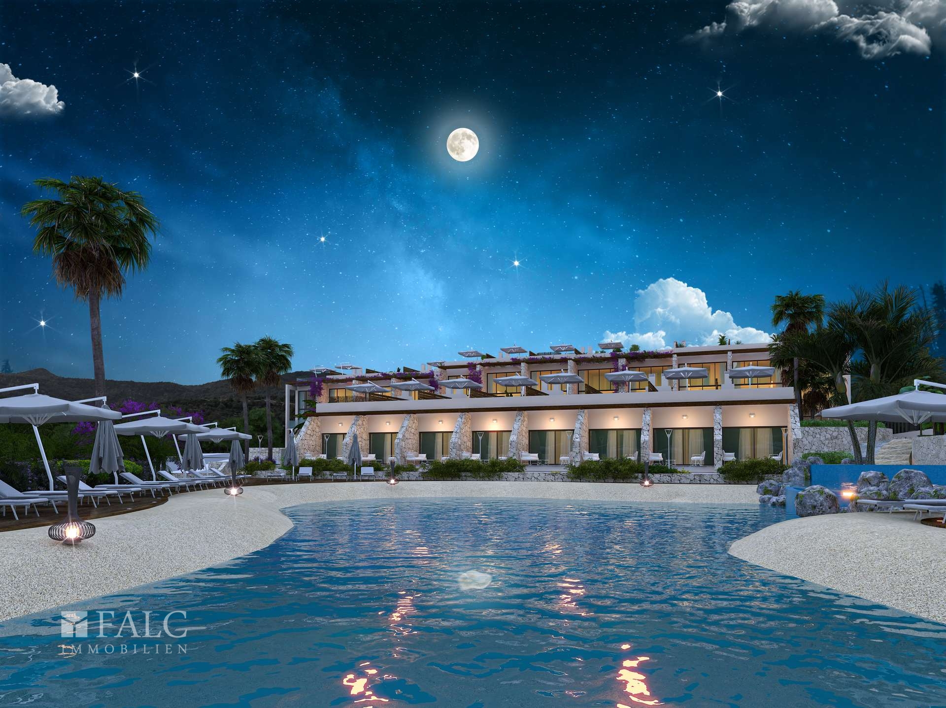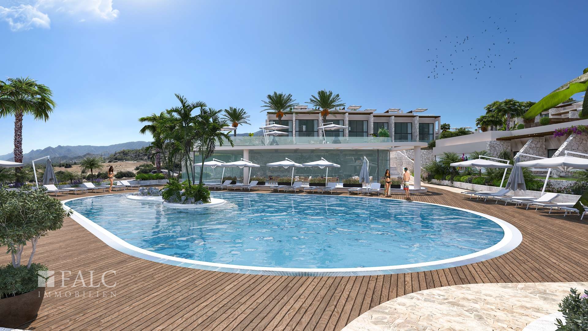 Gemeinsame Einrichtungen: - Landschaftsgärten - Kunststrand, Infinity und gemeinsame Pools mit Meerblick - Spa, Hamam, Fitnessraum, Dampfbad - Tennisplatz - Wanderweg - Outdoor Sport - Restaurant mit Dachterrasse