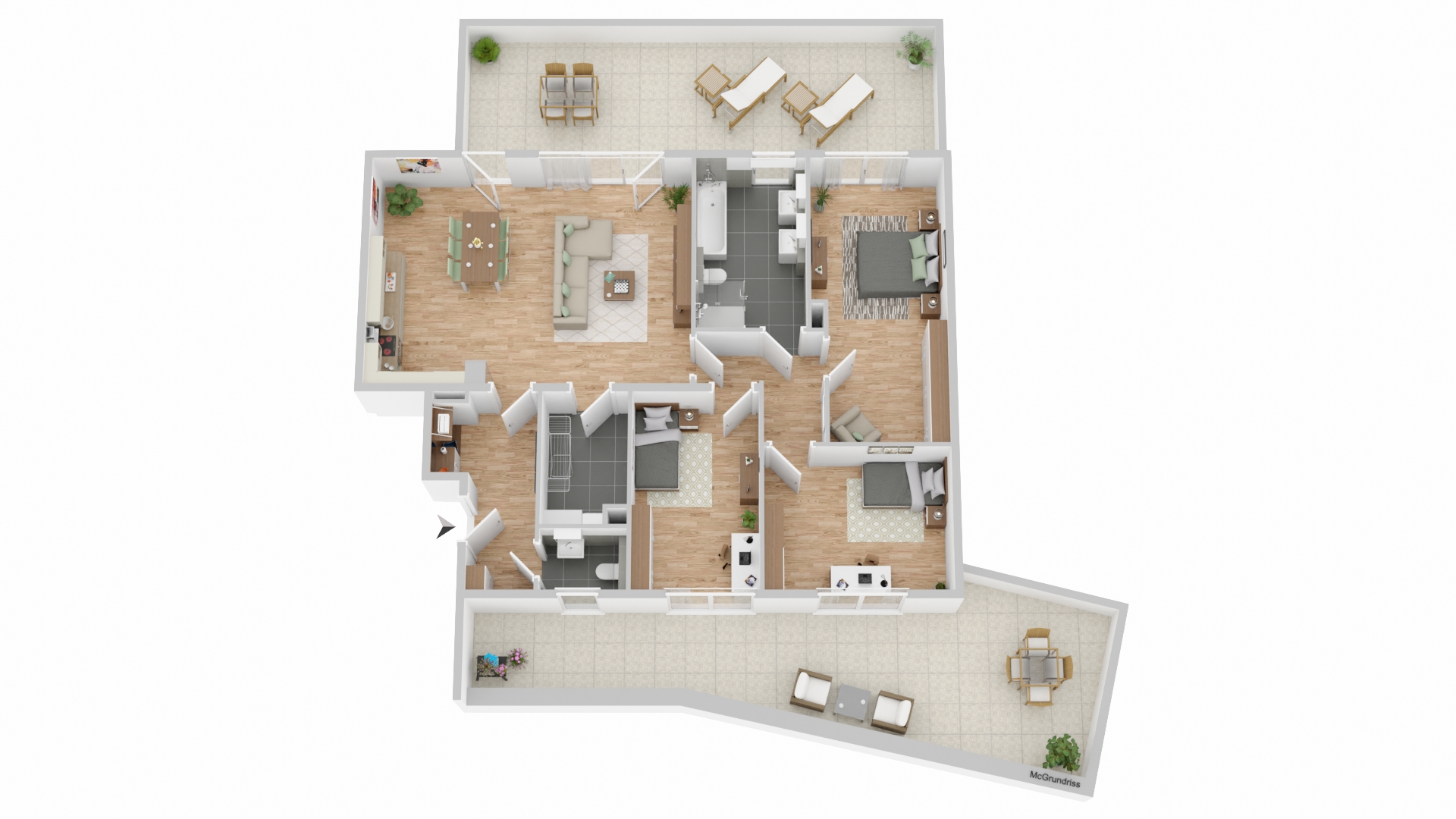 - 2 Dachterrassen - Hauswirtschaftsraum - Badezimmer mit Dusche - Viel Tageslicht - Offene Küche - Gäste-WC -Fußbodenheizung