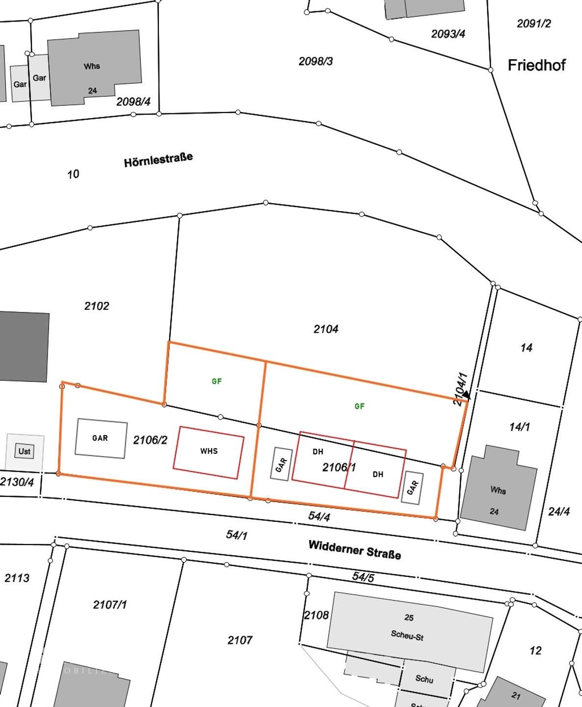 Je nach Zuschnitt und individueller Planung eignet sich das Grundstück ideal für den Bau eines Einfamilien- oder Doppelhauses.