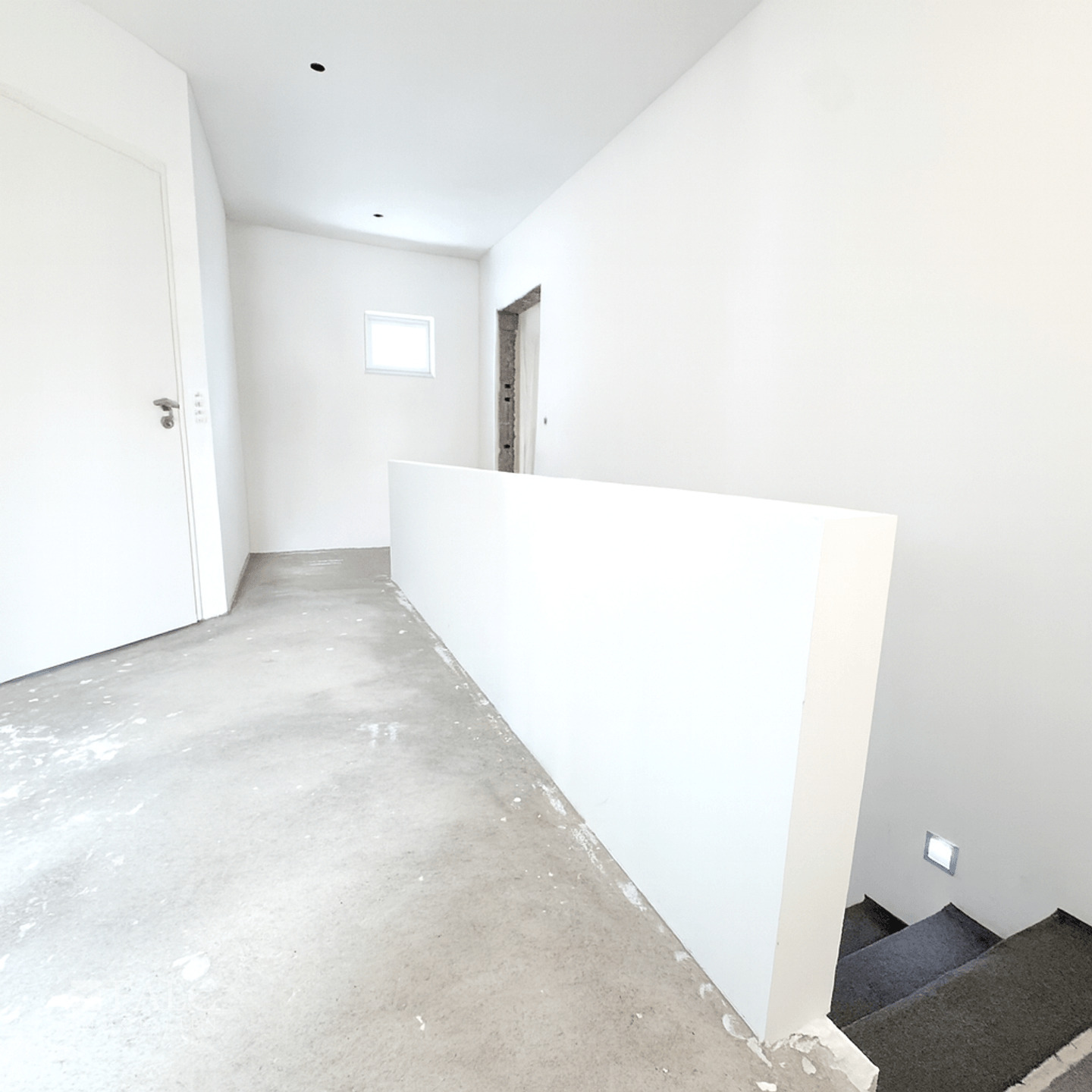 Das Haus bietet insgesamt vier großzügige Zimmer, die flexibel als Schlafzimmer, Kinderzimmer, Büro oder Gästezimmer genutzt werden können. Ein modernes Gäste-WC mit Dusche im Erdgeschoss bietet Komfort für Besucher und Familie gleichermaßen. Im Obergeschoss befindet sich ein weiteres Badezimmer, das sich aktuell im Rohbauzustand befindet und bereits mit einer Badewanne ausgestattet ist. Hier haben Sie die Möglichkeit, Ihre ganz persönlichen Vorstellungen in die Gestaltung einfließen zu lassen.