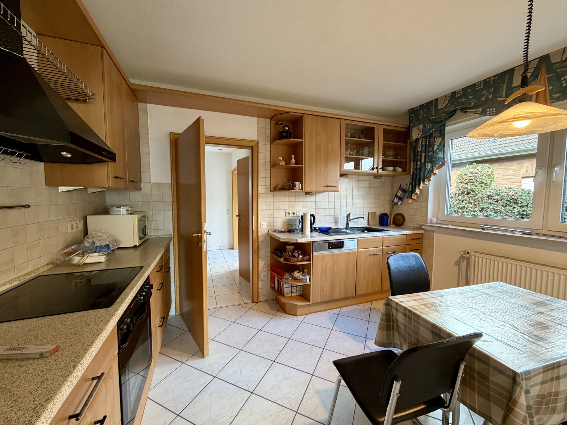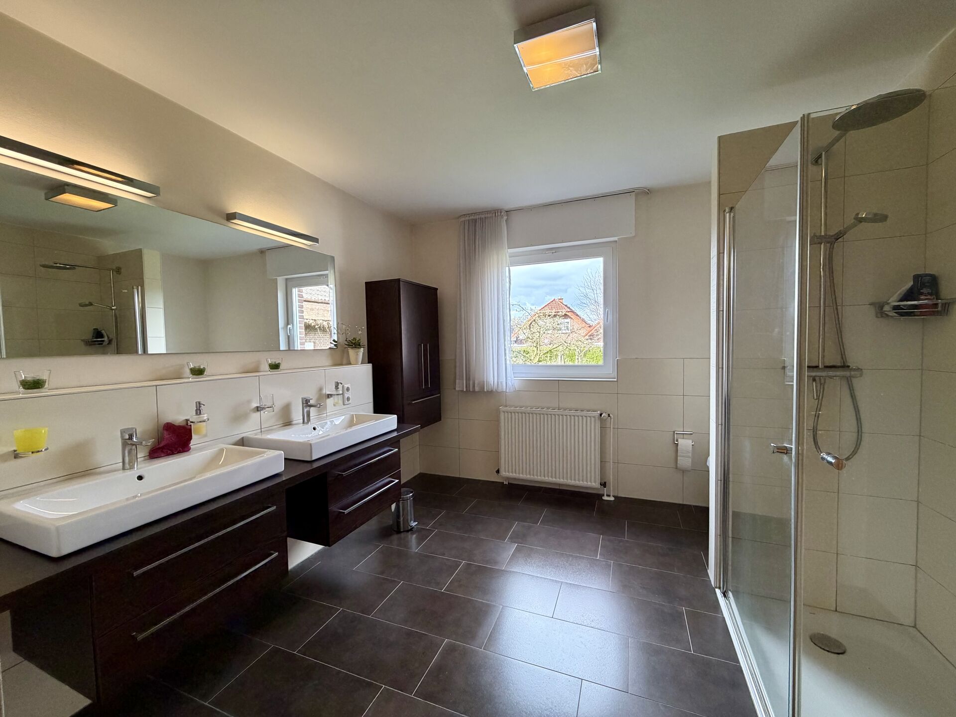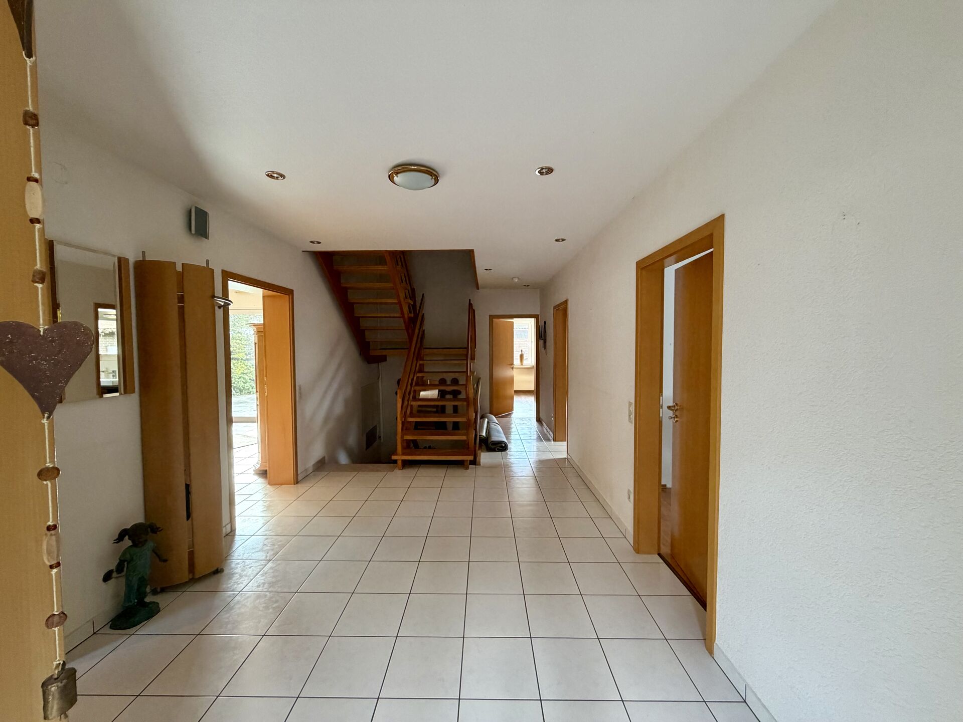 - Bad mit zwei Waschbecken und bodentiefer Dusche - Gäste-WC - Kaminofen im Wohnbereich - Terrasse - Ausbaureserve Spitzboden - voll unterkellert - Garage - PV-Anlage