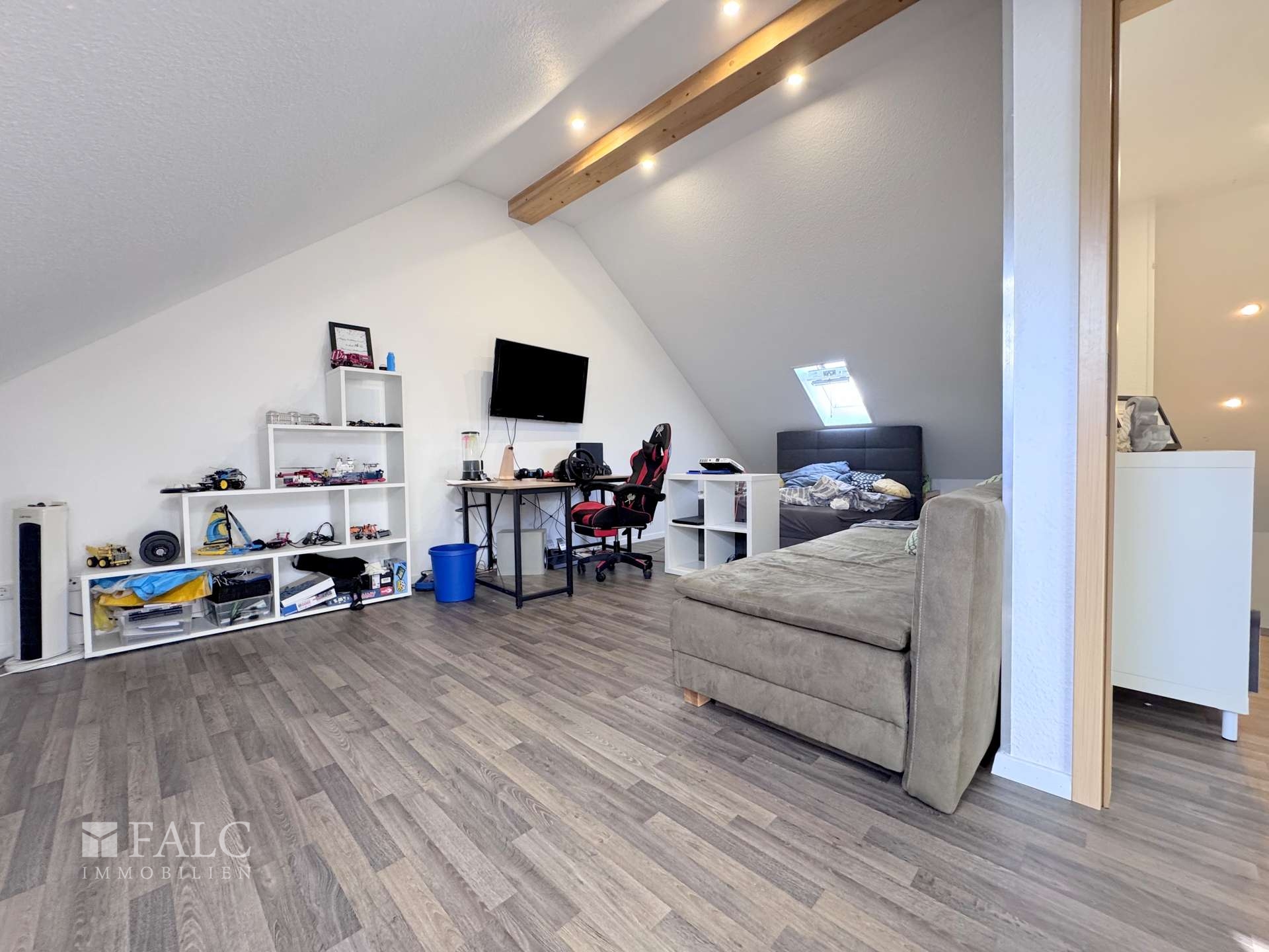 Das Dachgeschoss wurde im Jahr 2023 vollständig ausgebaut und erweitert das Raumangebot erheblich. Neben einem großen, lichtdurchfluteten Schlafzimmer steht hier ein weiterer Raum zur Verfügung, in dem die Heizungsanlage integriert ist. Dieser bietet zusätzlich eine Toilette und genügend Fläche für weitere Staumöglichkeiten. Damit eignet sich das Dachgeschoss sowohl als Rückzugsort für Eltern oder Jugendliche als auch als Gäste- oder Arbeitsbereich.