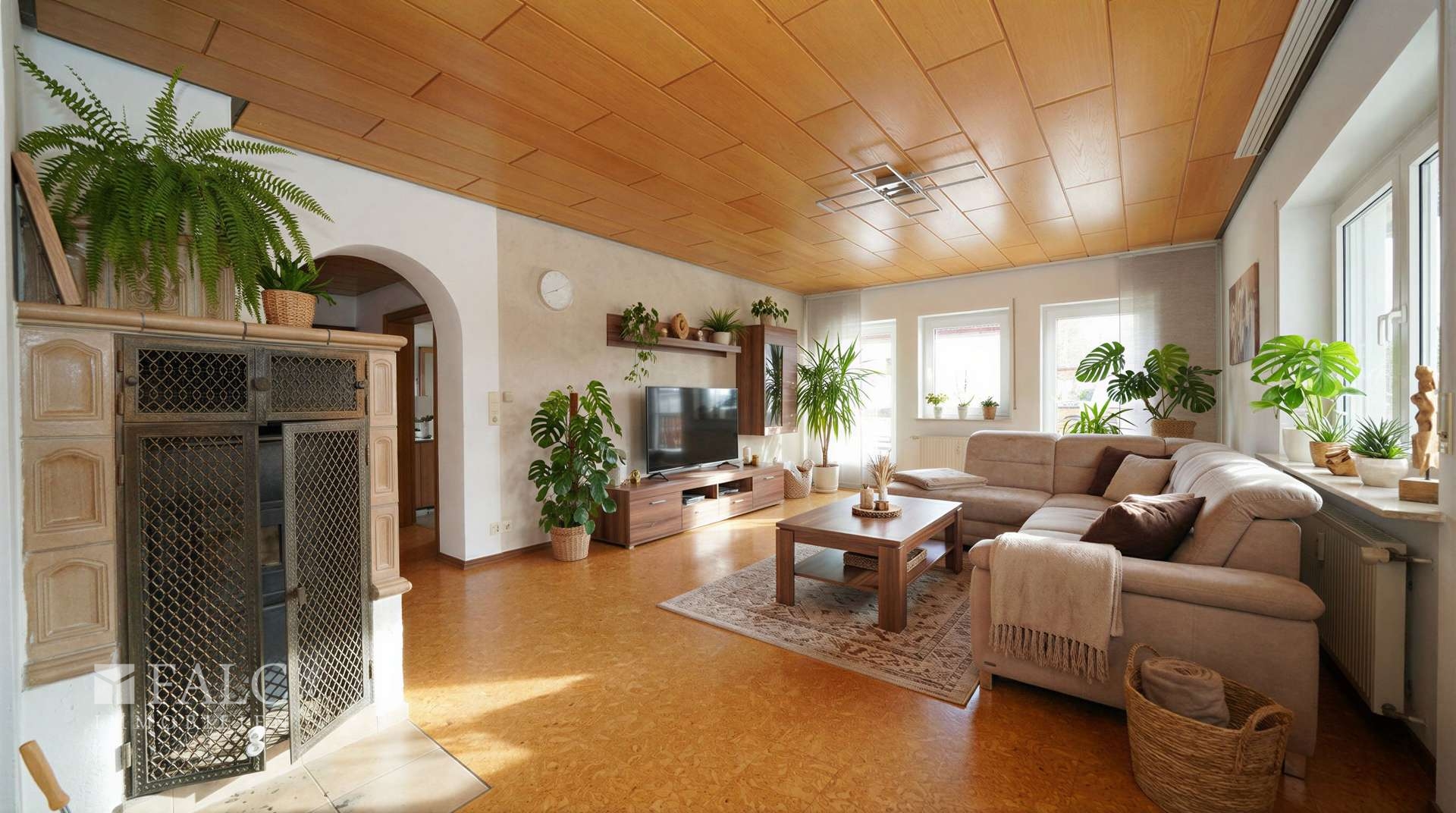 Beheizt wird das Haus überwiegend über Nachtspeicheröfen, ergänzt durch die stimmungsvollen Kamin- und Kachelöfen, die nicht nur für Wärme, sondern auch für eine besonders gemütliche Wohnatmosphäre sorgen.