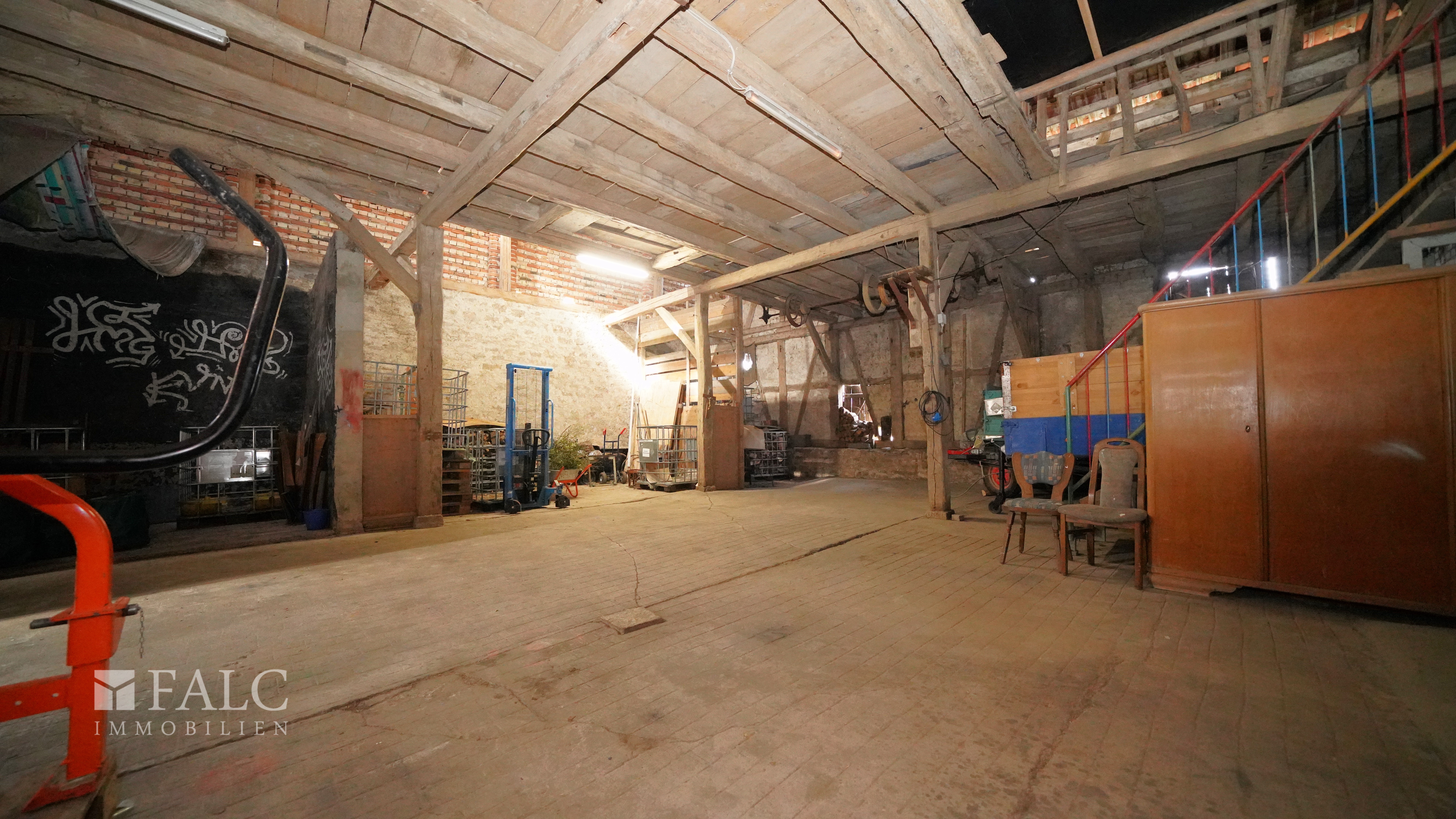 Doch nicht nur das Wohnhaus selbst überzeugt mit Platz und Potenzial. Auf dem Grundstück befindet sich zusätzlich eine große Scheune mit circa 320m² Fläche, die bereits im Kaufpreis enthalten ist. Sie erstreckt sich über zwei Ebenen und bietet unzählige Nutzungsmöglichkeiten – ob als Garage für größere Fahrzeuge, Werkstatt, Hobbybereich oder Lagerfläche. Hier können Sie Ihrer Kreativität freien Lauf lassen.