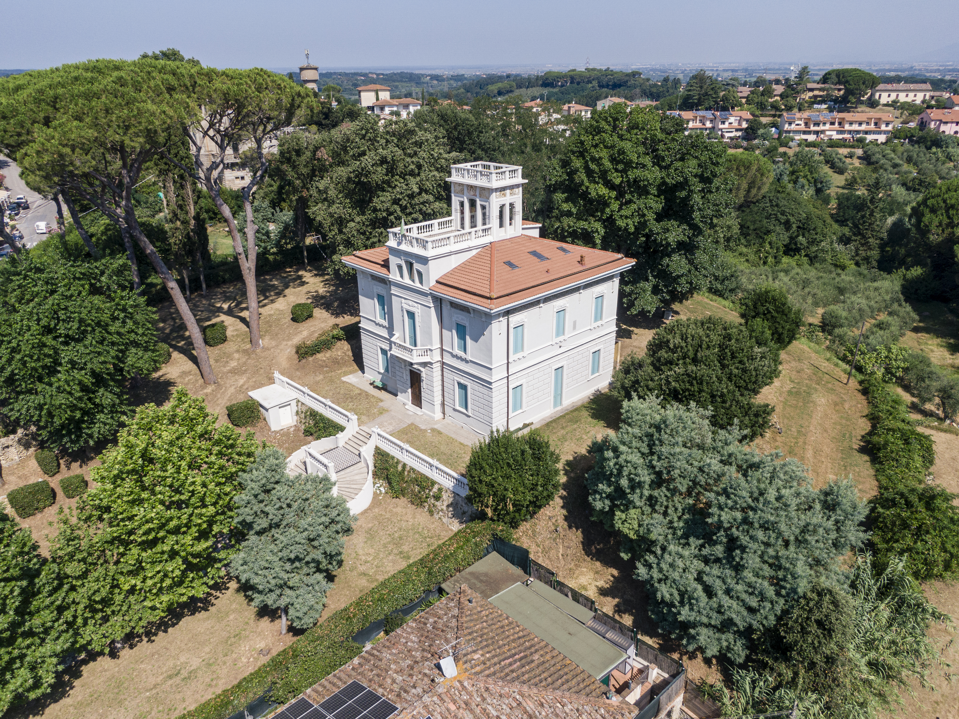 Diese prächtige Villa in Fauglia wurde 1905 erbaut und kürzlich im Außenbereich restauriert. Die Fassaden sind erneuert, und das Dach, einschließlich des Türmchens und der Panoramadachterrasse, wurde komplett neu aufgebaut.