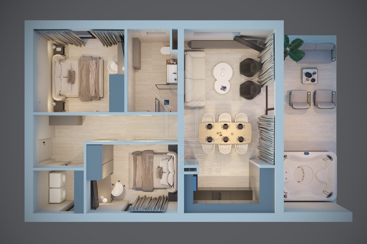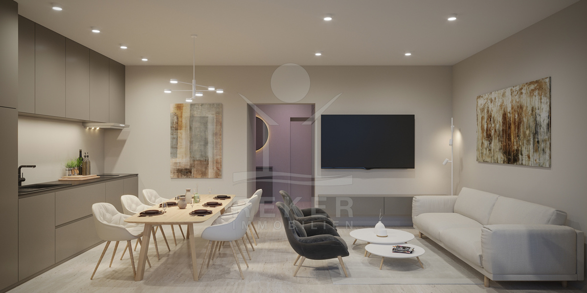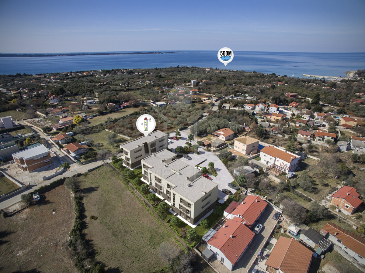 Nur wenige Gehminuten vom Meer entfernt liegt dieses Neubauprojekt in Peroj – ganz im Südwesten Istriens. Wer morgens gerne zu Fuß ans Wasser geht, wird sich hier wohlfühlen: Zum Strand führt ein verkehrsfreier Weg, sicher und angenehm. Auch die Promenade Richtung Fažana ist gut erreichbar. Und wer mag, kann mit dem Fahrrad bis nach Pula fahren – immer entlang der Küste.