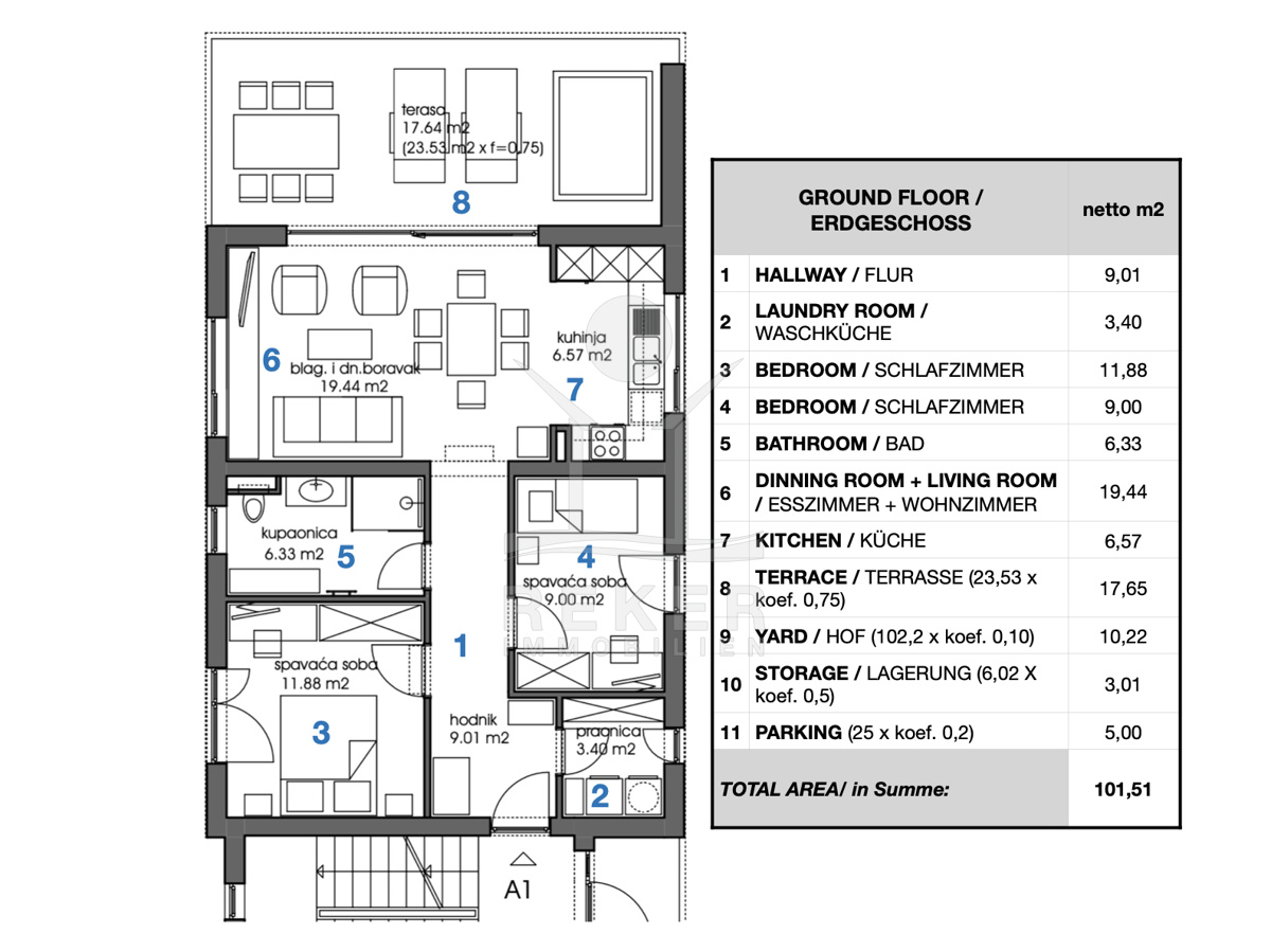 Sie lieben Ihre Ruhe, aber nicht die Stufen? Sie wollen Grün, aber keinen Rasenmäher-Stress? Dann ist diese Erdgeschosswohnung mit Garten in Peroj wie für Sie gemacht – entspannt, modern, strandnah.