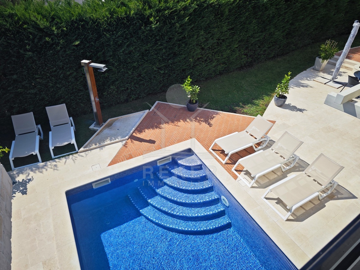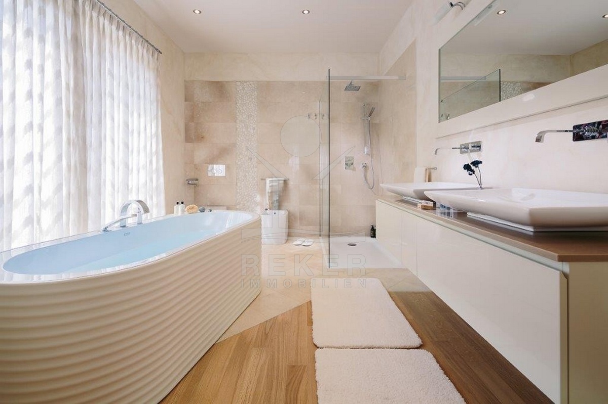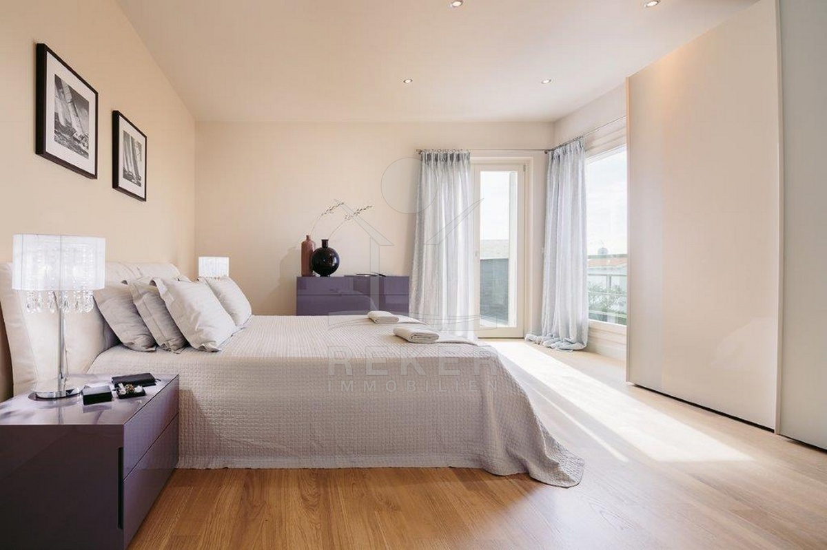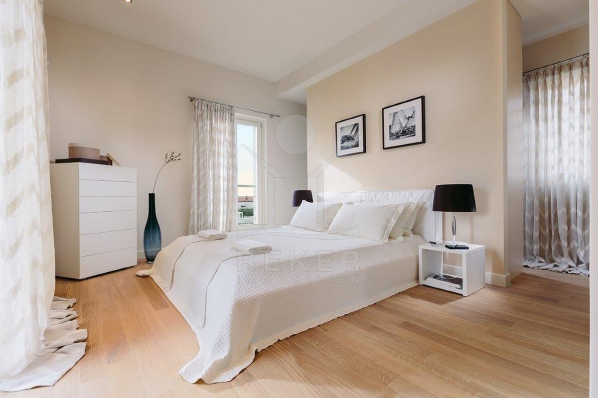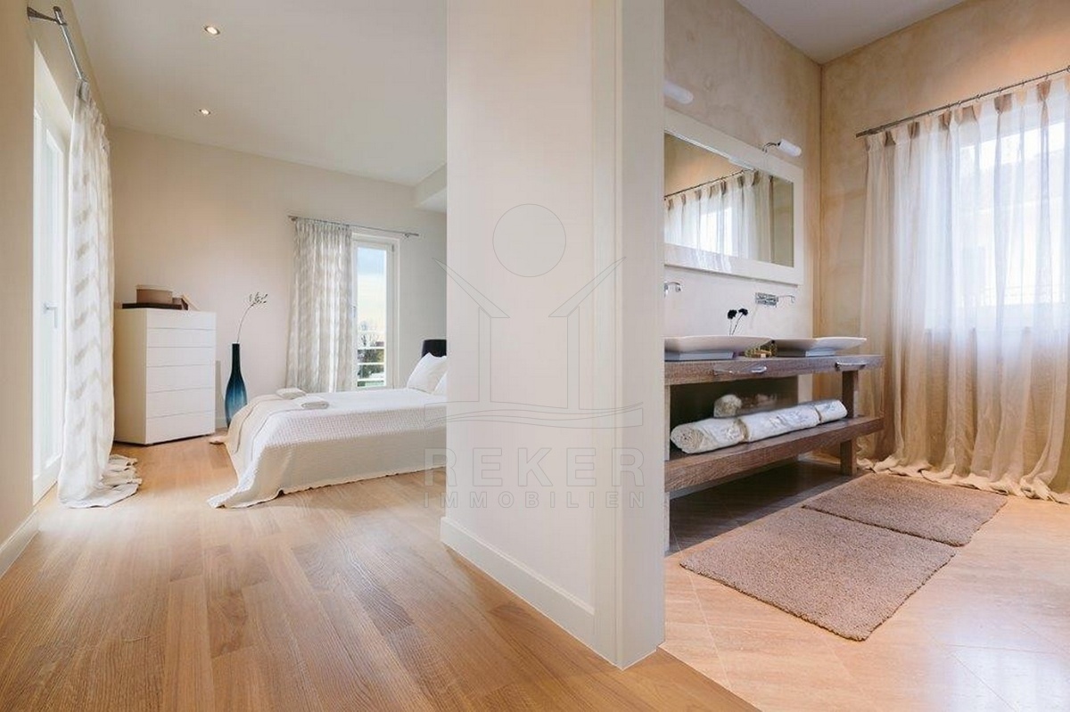 Diese moderne Villa liegt in einem ruhigen Wohngebiet bei Poreč – nur 200 Meter vom Zentrum entfernt. Zum Meer sind es etwa 1000 Meter, der nächste Strand ist nach rund 1300 Metern erreicht. Geschäfte, eine Schule und öffentliche Verkehrsmittel befinden sich in direkter Nähe. Auf dem Grundstück stehen Ihnen zwei überdachte Stellplätze zur Verfügung.