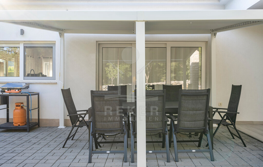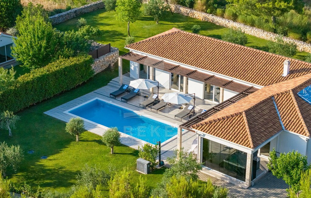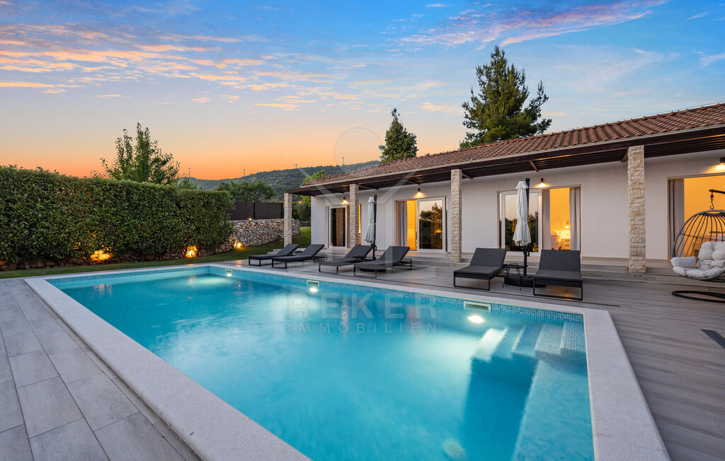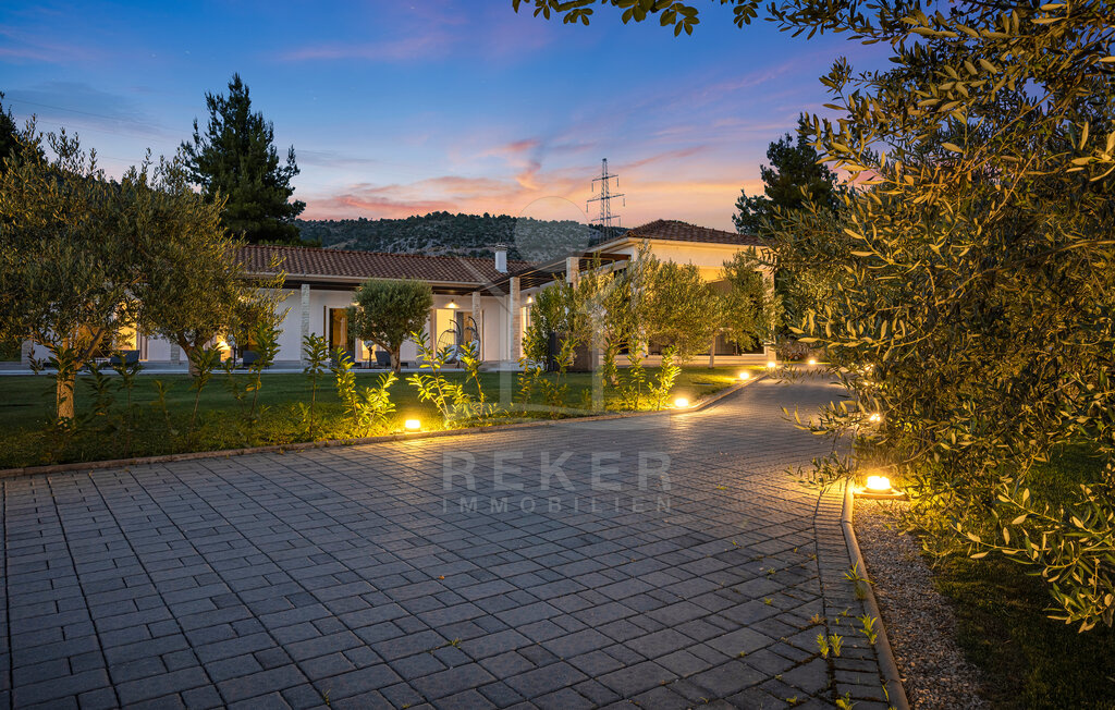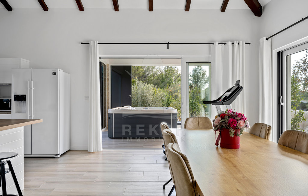 Zwischen sanften Hügeln und Olivenbäumen genießen Sie hier eine ruhige grüne Umgebung, nur wenige Kilometer von Šibenik entfernt. Das freistehende Haus bietet viel Privatsphäre und Raum für Familie oder Gäste. Auf einem Grundstück von 1.752 m² wurde ein moderner Rückzugsort geschaffen, der Komfort und Natur verbindet. Ihr Auto parken Sie direkt am Haus.