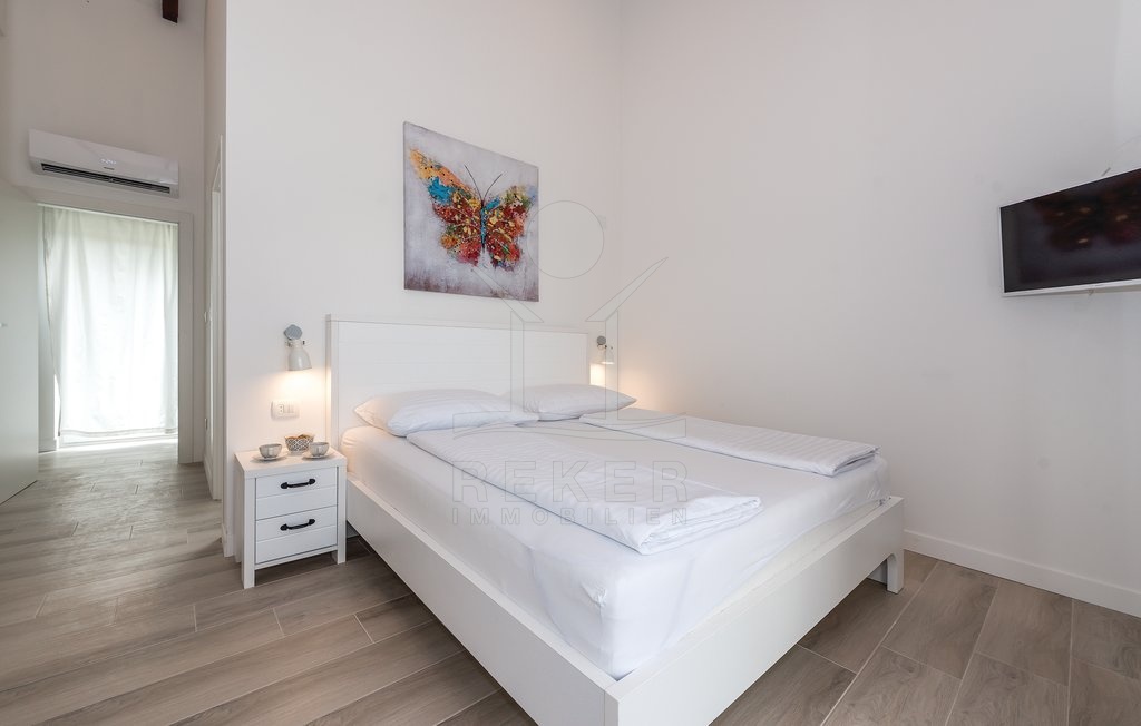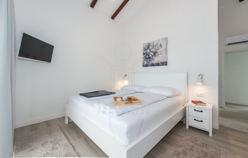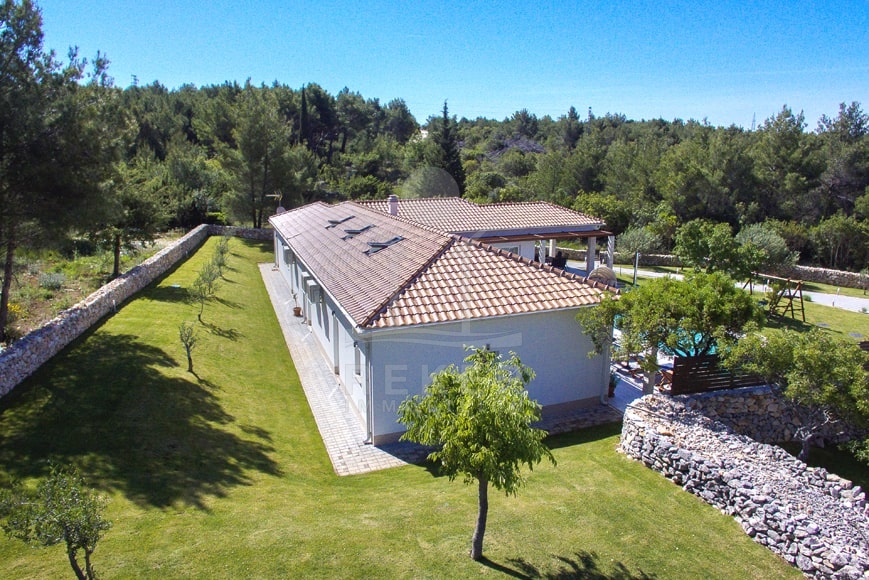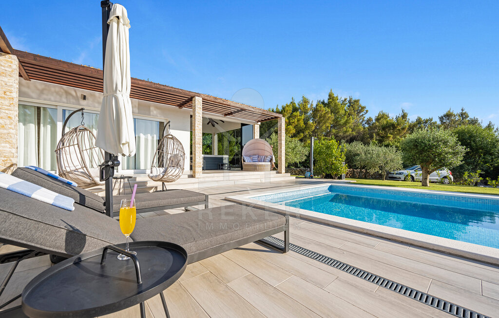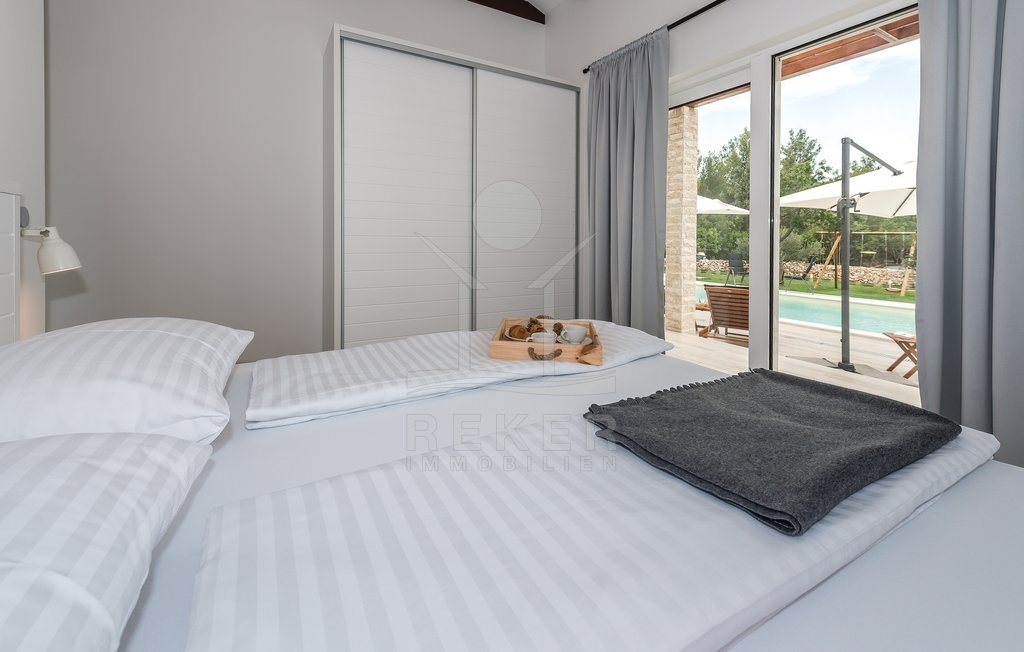 Zwischen sanften Hügeln und Olivenbäumen genießen Sie hier eine ruhige grüne Umgebung, nur wenige Kilometer von Šibenik entfernt. Das freistehende Haus bietet viel Privatsphäre und Raum für Familie oder Gäste. Auf einem Grundstück von 1.752 m² wurde ein moderner Rückzugsort geschaffen, der Komfort und Natur verbindet. Ihr Auto parken Sie direkt am Haus.