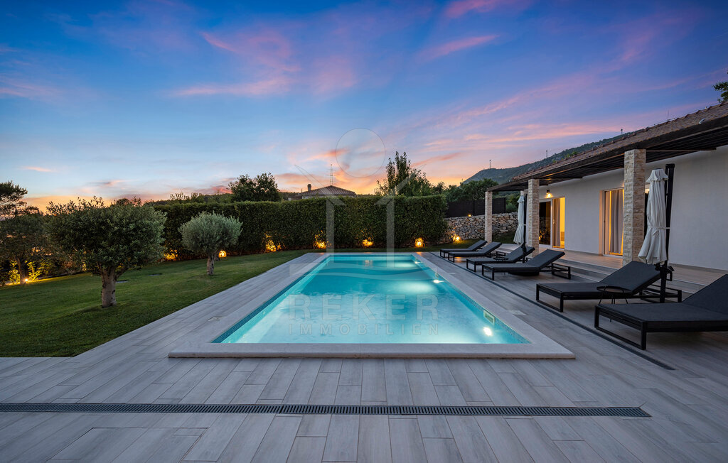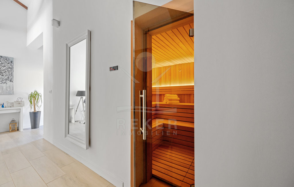 Ein Ort, an dem Sie ungestört leben und gleichzeitig genießen können: Die großzügige Villa mit 250 m² Wohnfläche verwöhnt mit beheiztem Pool, Sauna und Whirlpool. Mediterrane Gartenatmosphäre, Olivenbäume und moderne Ausstattung machen diese Immobilie zu einem exklusiven Zuhause für Anspruchsvolle.