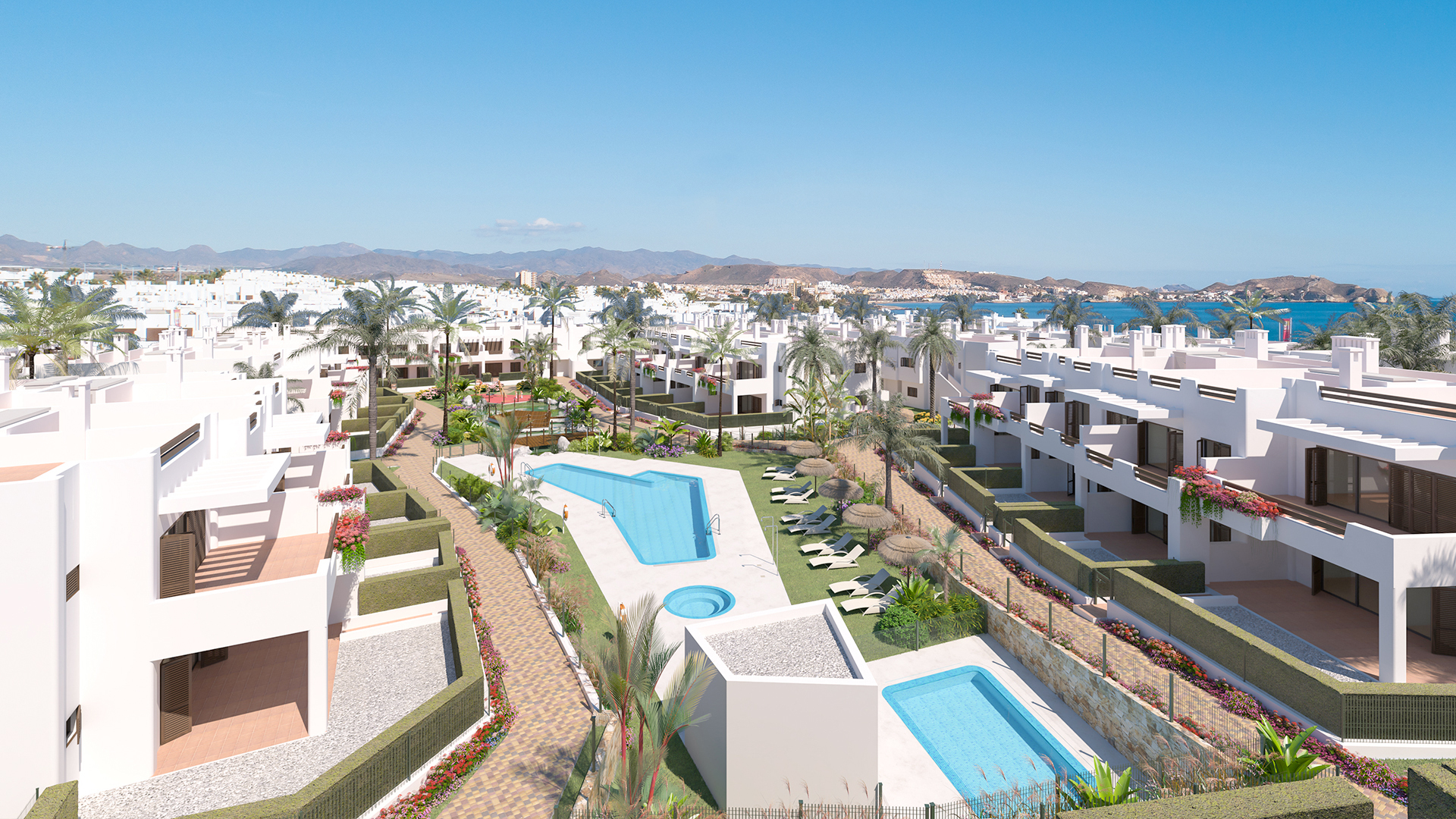 Die Wohnanlage erstreckt sich vor den wunderschönen Stränden La Entrevista und Los Nardos. Zusätzlich zu diesen Küstenjuwelen gibt es in der Nähe die Strände von San Juan de los Terreros, Mar Serena, Mar Rabiosa, Calipso, La Higuerica, La Carolina sowie die Buchten Tía Antonia, Cala Cuartel und Cala Cerrada. Hier können Sie die sonnigen Küstenabschnitte in vollen Zügen genießen.