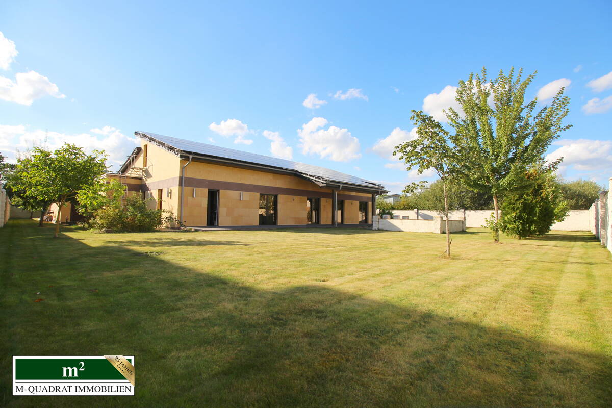 Entdecken Sie diese exklusive Villa in Adendorf, die modernen Luxus mit zeitloser Eleganz vereint. Diese neuwertige Immobilie aus dem Jahr 2014 präsentiert sich auf einem großzügigen Grundstück von ca. 2.000 m² und bietet Ihnen ein außergewöhnliches Wohnambiente auf einer Ebene. Sie befindet sich in einer ruhigen Sackgassenlage mit Wendehammer und wird mit einer massiv errichteten Galabaumauer, bestehend aus keramischem Klinkerpflaster, eingefriedet. Es gibt einen Kräutergarten, mehrere Obstbäume, eine Grundwasserpumpe und ein automatisches Bewässerungssystem.
