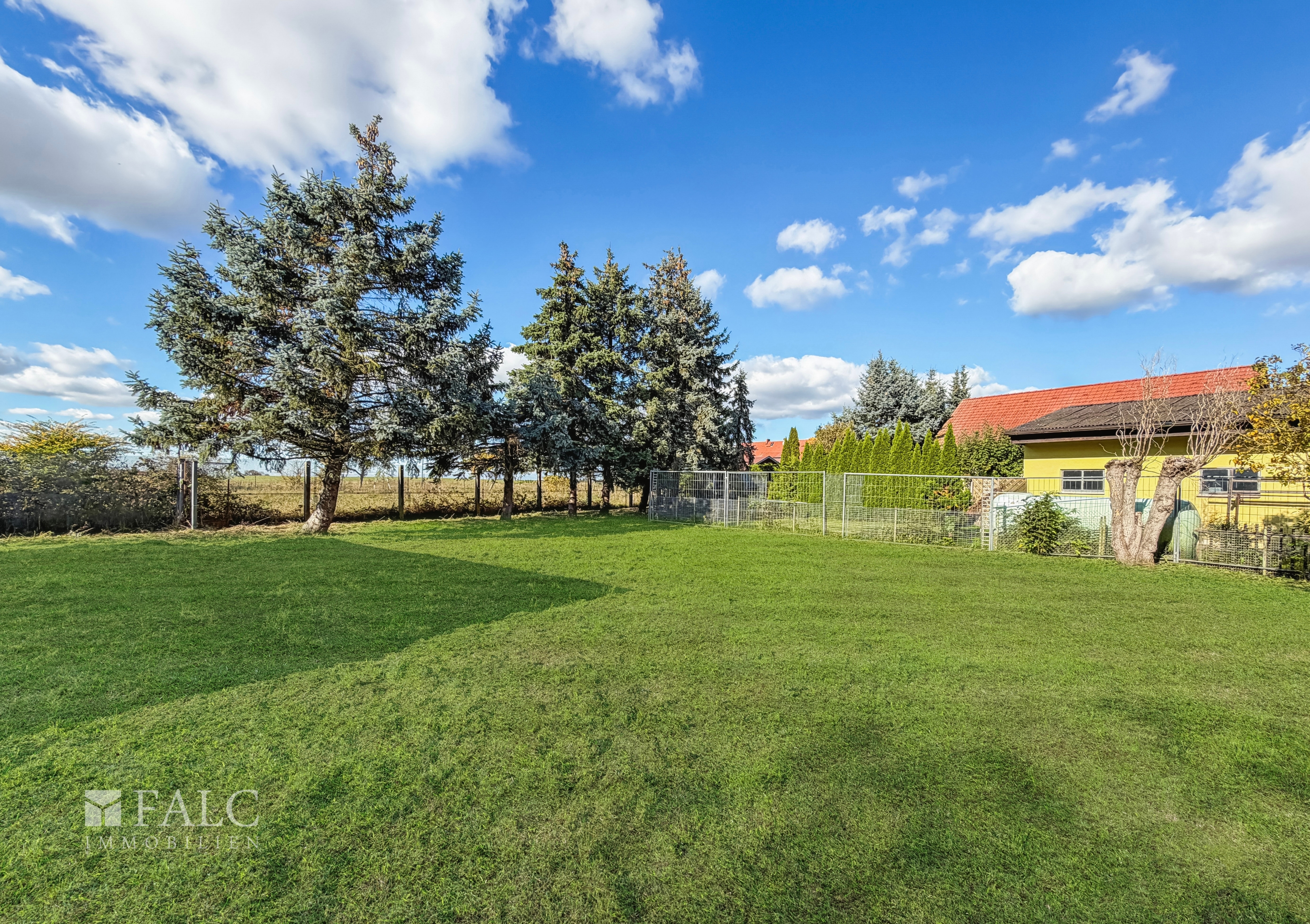 Das weitläufige Grundstück bietet eine große Wiesenfläche mit vielfältigen Nutzungsmöglichkeiten – ob für Garten, Freizeit oder Hobby. Ein regelmäßig vorbeikommender Bäckerwagen sorgt zudem für zusätzlichen Komfort im Alltag.
