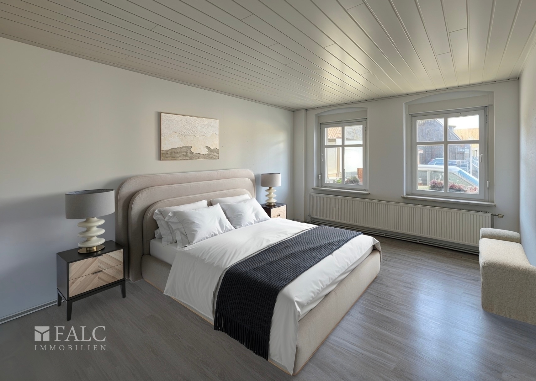 Dieses liebevoll modernisierte Einfamilienhaus mit Einliegerwohnung aus dem Jahr 1940 bietet auf ca. 194 m² Wohnfläche und einem großzügigen Grundstück von rund 825 m² viel Platz für Sie und Ihre Familie. Damit eignet sich die Immobilie ideal für Familien, Mehrgenerationenwohnen oder die Kombination aus Eigennutzung und Vermietung – ganz nach Ihren persönlichen Bedürfnissen. Das Haus wurde in den vergangenen Jahren fortlaufend modernisiert und präsentiert sich heute in einem sehr gepflegten Zustand. Im Rahmen der Sanierungen wurde das Gebäude so umgestaltet, dass sich derzeit zwei voneinander getrennte Wohneinheiten ergeben, die bei Bedarf problemlos wieder verbunden werden können. Zudem besteht die Möglichkeit , den Dachboden auszubauen und damit zusätzlichen Wohnraum oder Stauraum zu schaffen. Die Hauptwohnung mit ca. 117 m² Wohnfläche befindet sich im Obergeschoss und wurde im Jahr 2019 hochwertig modernisiert. Helle Räume, ein durchdachtes Raumkonzept und moderne Ausstattung sorgen für ein angenehmes Wohngefühl. Das Wohnzimmer wurde zwischenzeitlich in zwei separate Zimmer unterteilt, kann jedoch jederzeit wieder zu einem großen, offenen Wohnraum zusammengeführt werden – ganz nach Ihren persönlichen Vorstellungen. Das ca. 24 m² große Kinderzimmer, das Schlafzimmer sowie das stilvolle Badezimmer mit Badewanne und bodengleicher Dusche lassen keine Wünsche offen. Die moderne Einbauküche, die im Kaufpreis enthalten ist, fügt sich harmonisch in das offene Wohnkonzept ein. Eine eigene Terrasse mit schönem Ausblick lädt dazu ein, den Feierabend entspannt ausklingen zu lassen. Die Einliegerwohnung im Erdgeschoss bietet ca. 77 m² Wohnfläche und wurde im Jahr 2021 modernisiert. Helle Räume, eine moderne Ausstattung und ein angenehmes Wohnambiente schaffen hier ein rundum behagliches Zuhause. Das gemütliche Wohnzimmer bietet Platz zum Entspannen und Wohlfühlen, das Schlafzimmer überzeugt durch eine ruhige Atmosphäre und ausreichend Stellfläche. Die moderne Küche mit Einbauküche, die ebenfalls im Kaufpreis enthalten ist, fügt sich harmonisch in das Raumkonzept ein. Das moderne Badezimmer mit bodengleicher Dusche rundet das gelungene Gesamtbild ab. Durch den Hinterausgang gelangt man direkt auf die schöne Terrasse mit Blick in den Garten – ein idealer Ort, um den Tag bei einem Kaffe in der Morgensonne zu beginnen oder am Abend den Blick in den Garten zu genießen.