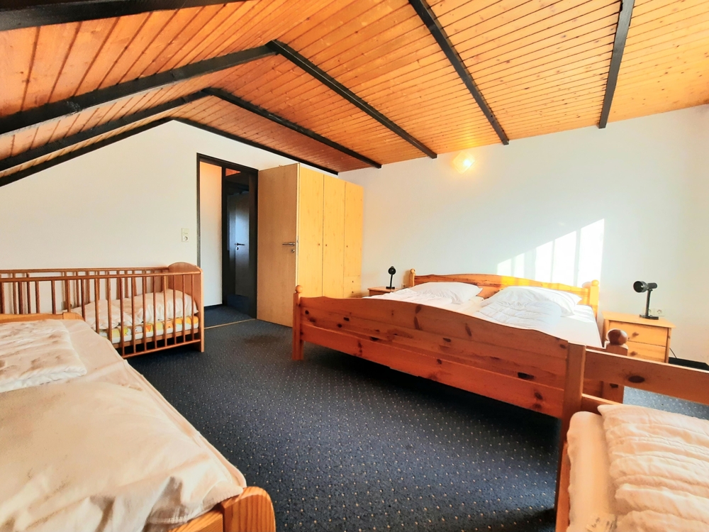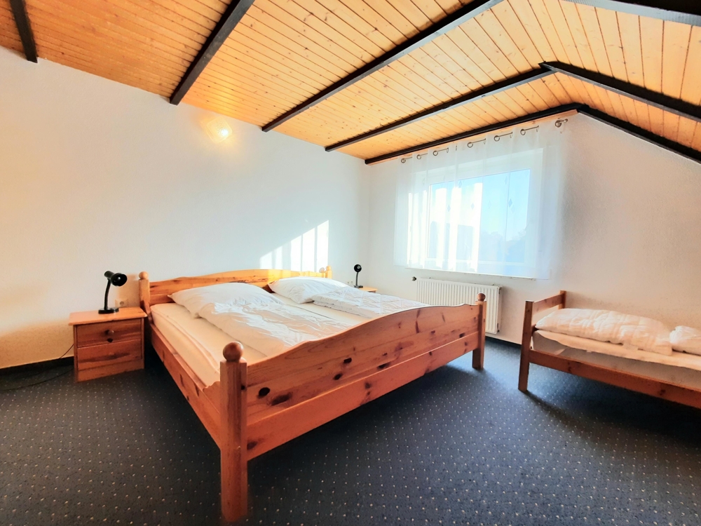 Dieses Wohnhaus mit Anbau wurde im Jahre 1987 mit entsprechend hochwertigen Materialien erbaut und bezogen. Das Hauptgebäude beherbergt zwei Ferienwohnungen zu ebener Erde, ergo parterre. Im ehem. Garagengebäude (Anbau) ist eine weitere ca. 40qm große Ferienwohnung zu ebener Erde. Einer der drei vermietbaren Ferienwohnungen befindet sich auf zwei Ebenen. Hier befinden sich zwei großzügige Schlafräume und ein Flur mit Garderobe. Die Eigentümer- bzw. Betreiberwohnung, befindet sich im Anbau über den ehem. Garagen und verfügt über eine vollüberdachte Loggia, die nach Norden ausgerichtet ist und über einen eigenen Eingangsbereich verfügt, in dem sich auch die neue Heizungsanlage befindet. Dieses Haus kann auch als Ein- oder Zweifamilienhaus genutzt werden. Interessant für Käufer, die hier selbst wohnen wollen und sich zudem lukrative Nebeneinkünfte sichern möchten.