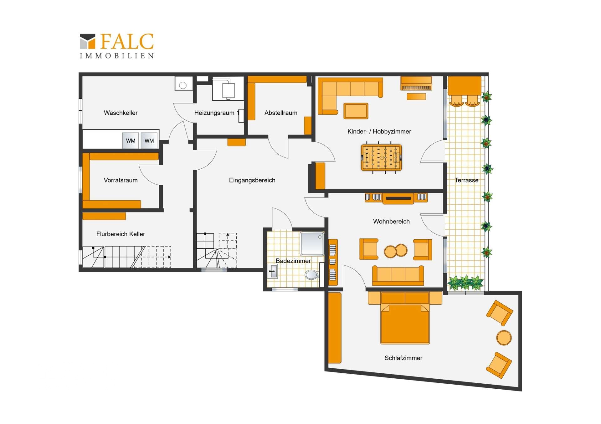 Über eine zentrale Maisonette-Treppe innerhalb der Wohnung gelangen Sie in Ihren Souterrain-Bereich. Dieser hält 3 weitere Zimmer bereit - ein perfekter Bereich für Ihre Kinder oder Ihr Homeoffice oder Hobby. Eine weitere überdachte Terrasse sowie ein großer Abstellraum vervollständigt das Angebot.