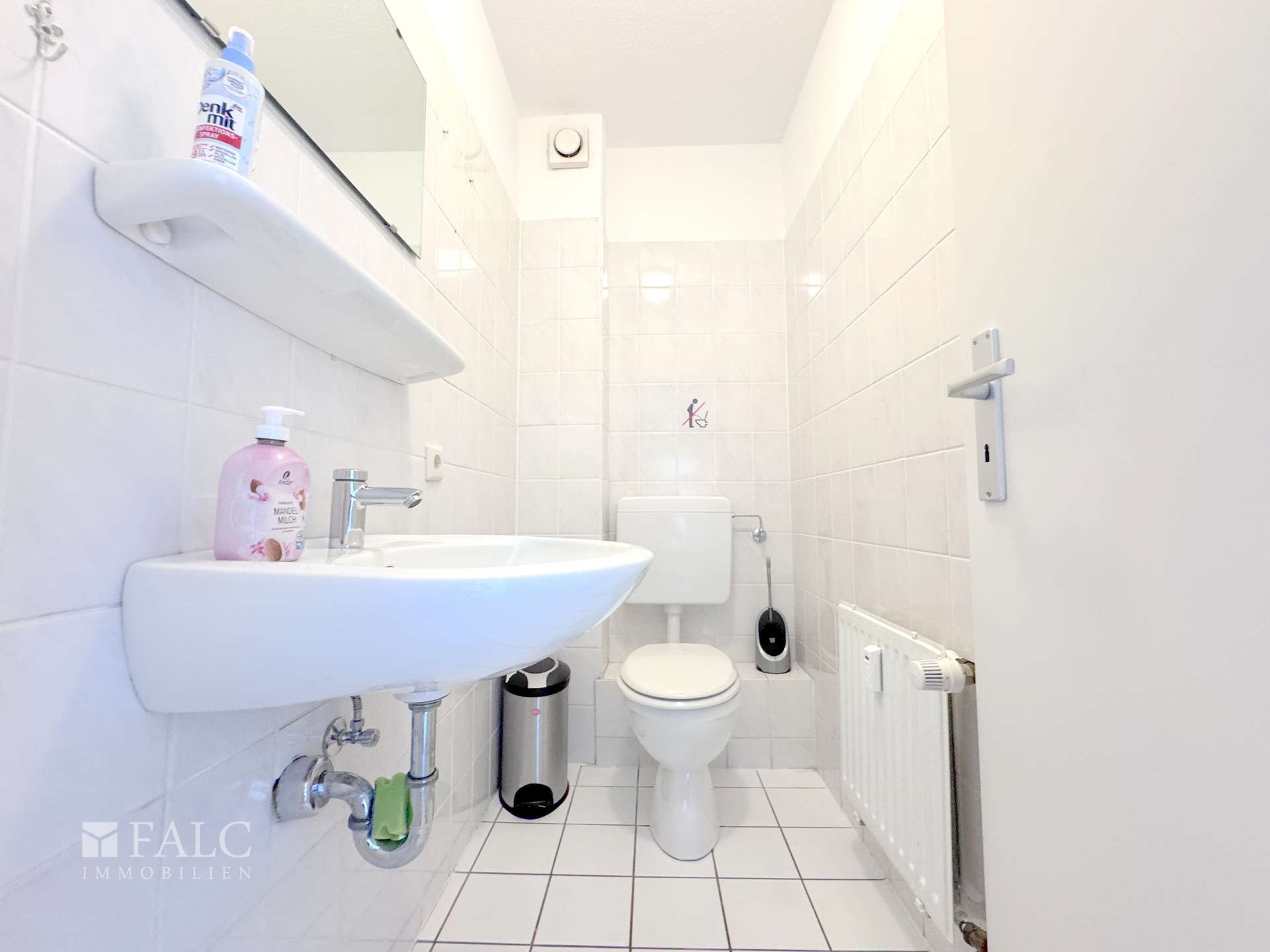 Das WC ist in neutralem Weiß gefliest, funktional ausgestattet und ebenfalls sehr gepflegt. Es rundet das Gesamtbild einer sofort nutzbaren Immobilie ab, die keine großen Investitionen erfordert.