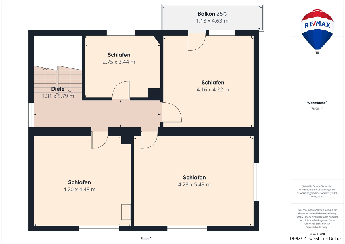 Maklerprovision in Höhe 3,57% inkl. 19 % MwSt. vom Kaufpreis ist mit Abschluss des Kaufvertrages verdient und fällig. Bei einem Verkaufspreis von unter 99.999,99 EUR wird eine Maklerprovision in Höhe von 3.570,00 EUR (pauschal) fällig. RE/MAX erhält einen unmittelbaren Zahlungsanspruch gegenüber dem Käufer (Vertrag zugunsten Dritter, § 328 BGB). Hinweise: Bitte beachten Sie, dass dieses Angebot anhand der uns vom Eigentümer zur Verfügung gestellten Daten und Unterlagen erstellt wurde. Trotz aller Sorgfalt können wir für die Richtigkeit und Vollständigkeit der Angaben keine Gewähr übernehmen. Verbraucherinformationen: Online-Streitbeilegung gemäß Art. 14 Abs. 1 ODR-VO: Die Europäische Kommission stellt eine Plattform zur Online-Streitbeilegung (OS) bereit, die Sie hier finden: ec.europa.eu/consumers/odr
