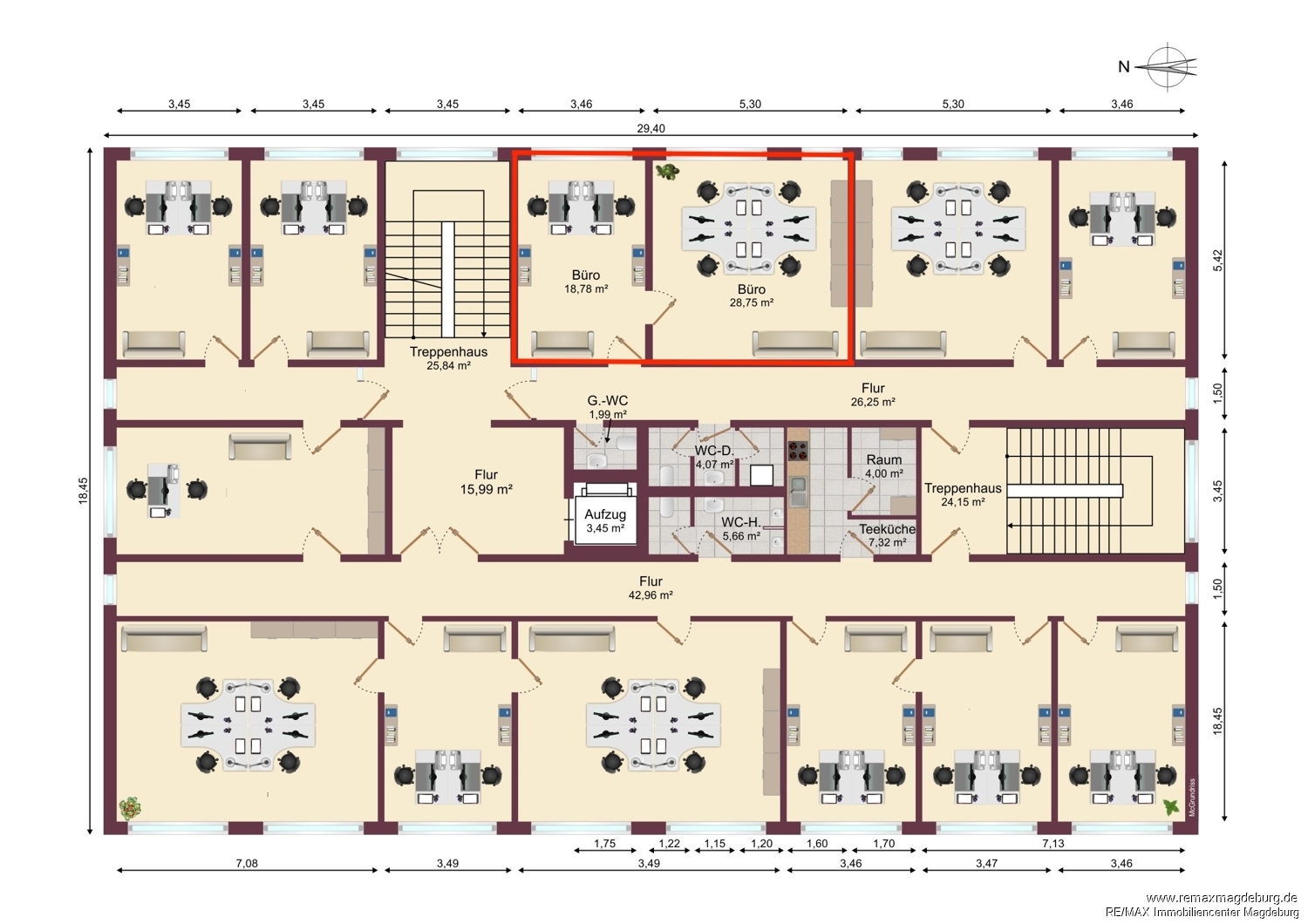 Die angebotene Büroeinheit umfasst eine Fläche von ca. 47 m² und befindet sich im etablierten Bürogebäude am Lorenzweg 56, nur wenige Minuten von der Magdeburger Innenstadt entfernt. Die verkehrsgünstige Lage sorgt für eine optimale Anbindung an den öffentlichen Nahverkehr sowie an zentrale Geschäfts- und Dienstleistungsbereiche.