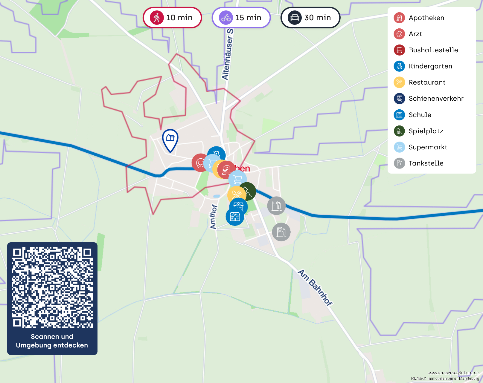 Erxleben überzeugt mit einer ruhigen, naturnahen Wohnlage, die besonders für Familien attraktiv ist. Umgeben von viel Grün genießen Sie hier eine entspannte Atmosphäre mit gleichzeitig hervorragender Anbindung und Infrastruktur.