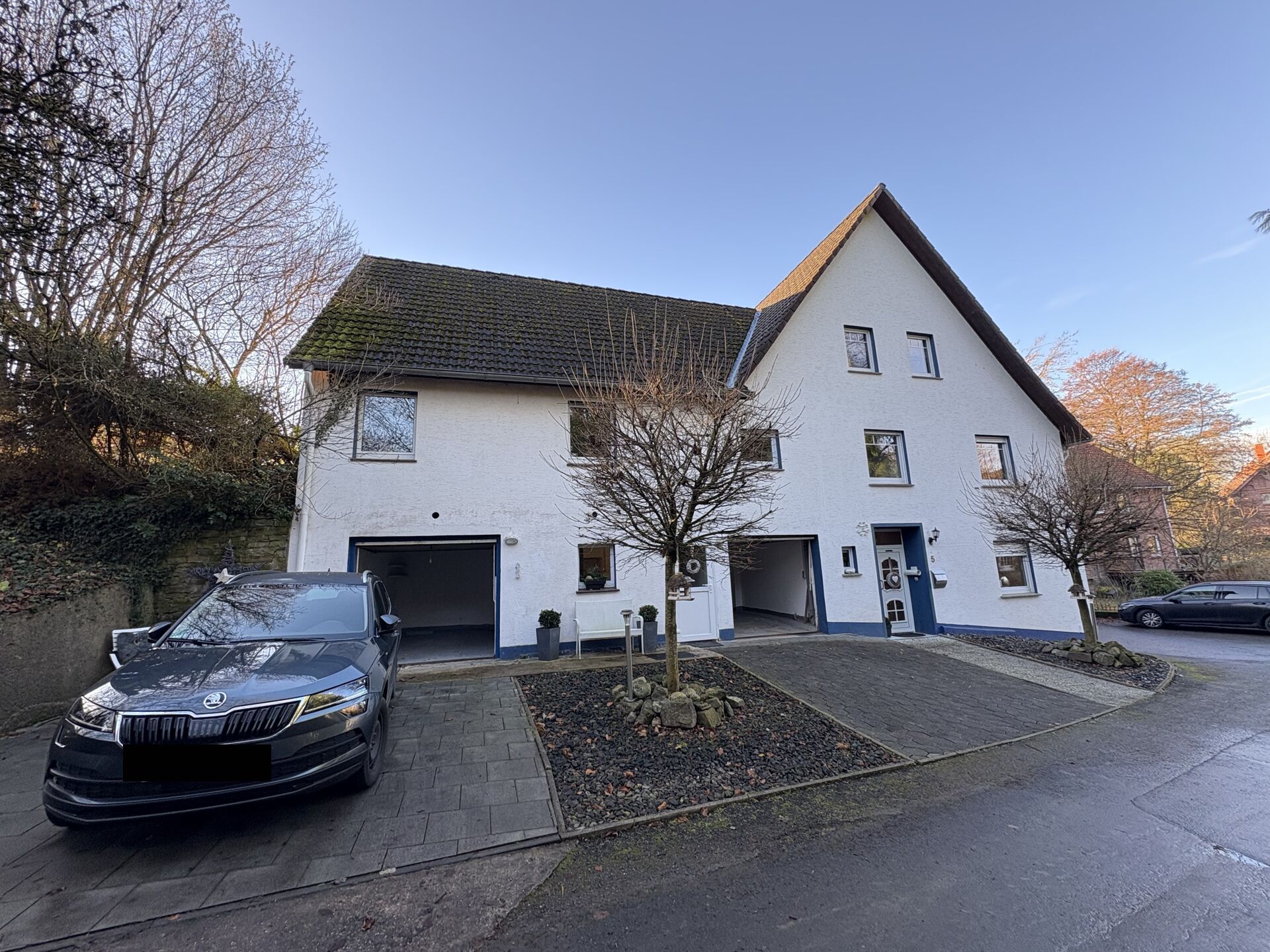 Dieses modernisierte Zweifamilienhaus steht in Lügde , im beliebten Ortsteil Sabbenhausen. Es bietet auf jeweils zwei Etagen ca. 220 m² Wohnfläche, aufgeteilt in eine Hauptwohnung mit ca. 129 m² und eine hübsche Einliegerwohnung mit ca. 91 m². Im EG der Hauptwohnung befinden sich der großzügige Wohnbereich, die Küche und ein Gäste-WC. Vom Flur aus verbreitet ein gemütlicher Kaminofen behagliche Wärme im Haus. Im Obergeschoss erwarten Sie mehrere Zimmer zur flexiblen Nutzung und ein modernes Bad. Genießen Sie auf der einladenden Terrasse entspannte Stunden im Freien. Die separate Einliegerwohnung mit 3 Zimmern, Küche, Bad und ebenfalls Gäste-WC und Kaminofen bietet vielseitige Nutzungsmöglichkeiten, ob zur Selbstnutzung oder als Einnahmequelle. Dank der umfassenden Modernisierungen im Jahr 2015 ist das Haus in gutem Zustand, mit Laminat- und Fliesenböden, die den modernen Charakter unterstreichen. Ihre Fahrzeuge stehen geschützt in den 2 Garagen und Kellerräume erweitern das Platzangebot. Verpassen Sie nicht diese Gelegenheit, ein stilvolles Zuhause in herrlich ländlicher Lage zu erwerben. Kontaktieren Sie uns für Informationen oder zur Vereinbarung eines Besichtigungstermins.