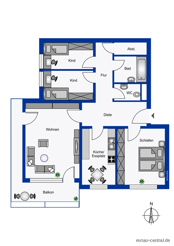 Das lichtdurchflutete Wohnzimmer führt zu einem einladenden Balkon, der entspannte Stunden im Freien verspricht. Die gut ausgestattete Einbauküche vereint Funktionalität und Komfort. Neben einem modernen Badezimmer und einem zusätzlichen Gäste-WC bietet die Wohnung außerdem eine praktische Abstellkammer, die zusätzlichen Stauraum schafft und das stimmige Raumkonzept abrundet.