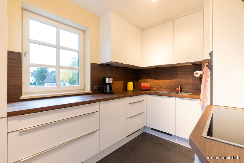 Das Badezimmer mit Badewanne lädt zum Entspannen ein, während die moderne Küche mit Granitboden, Markeneinbauküche und allen Elektrogroßgeräten optimal für den täglichen Bedarf ausgestattet ist.