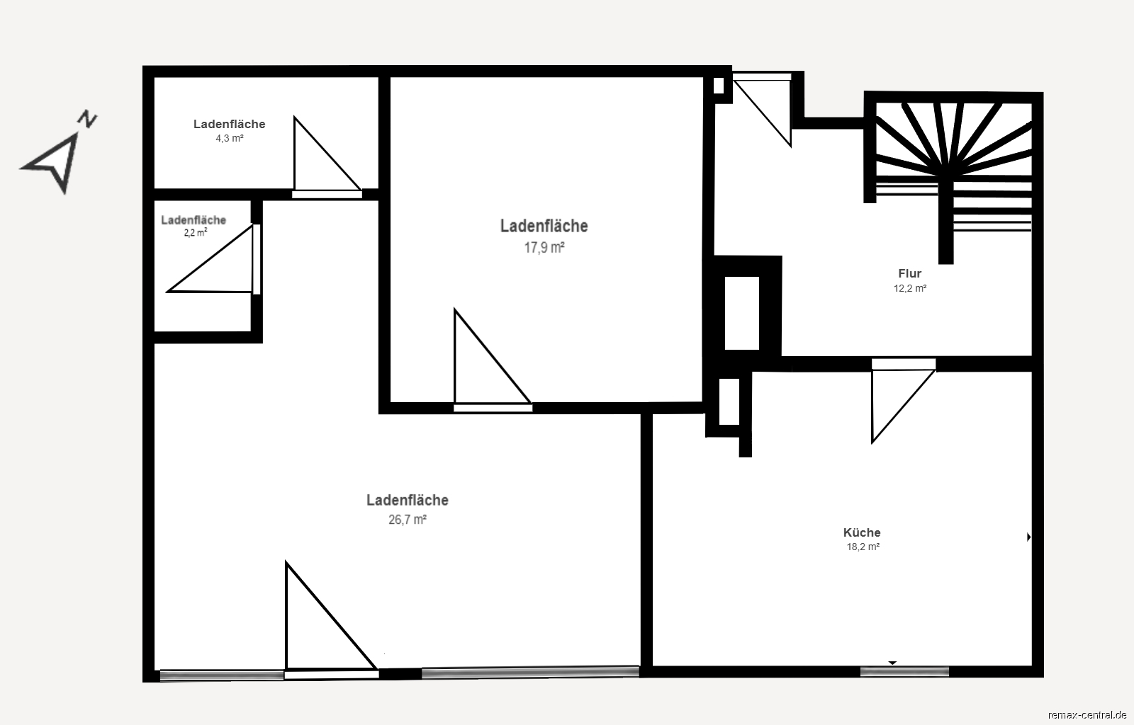 Straßenseitig und mit separatem Eingang liegt die Gewerbeeinheit: Die aktuell vermietete Ladenfläche bringt rund 1.600 € monatliche Kaltmiete ein – eine solide Einnahmequelle, gut sichtbar und ebenerdig gelegen.