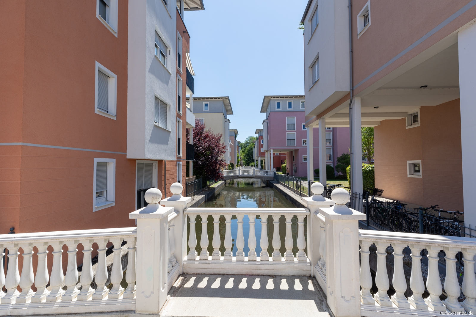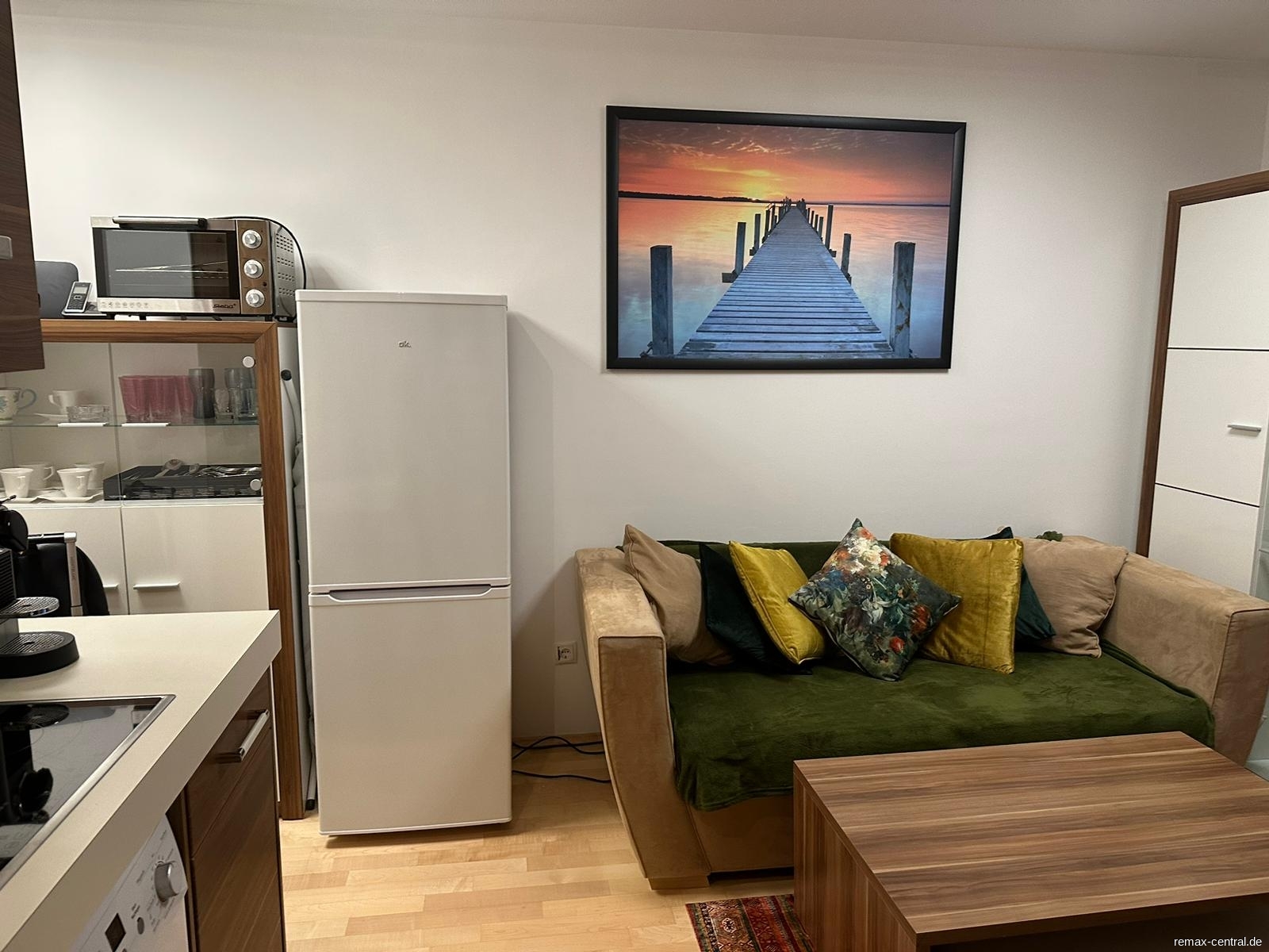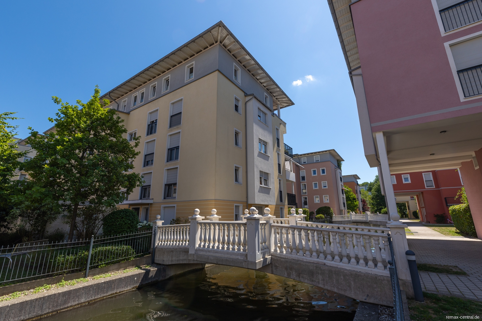 Das Apartment präsentiert sich in einem modernen Stil und ist vollständig möbliert. Der Wohn- und Schlafbereich ist geschmackvoll eingerichtet. Ein Highlight ist der Balkon, der einen herrlichen Ausblick auf die grüne Außenanlage und den idyllischen Flusskanal bietet. Hier können Sie die Natur genießen und entspannte Momente verbringen.