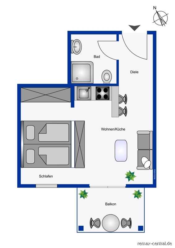 - Garderobenmöbel im Eingangsbereich - Voll möblierte Ausstattung Wohn-/Schlafbereich - Kochnische mit Cerankochfeld, Backofen, Waschmaschine, Kühl-/Gefrierkombination, Dunstabzugshaube - Balkon - Ein Duplex-Stellplatz kann für 20.000 EUR angeboten werden und bringt 60 EUR pro Monat Miete.