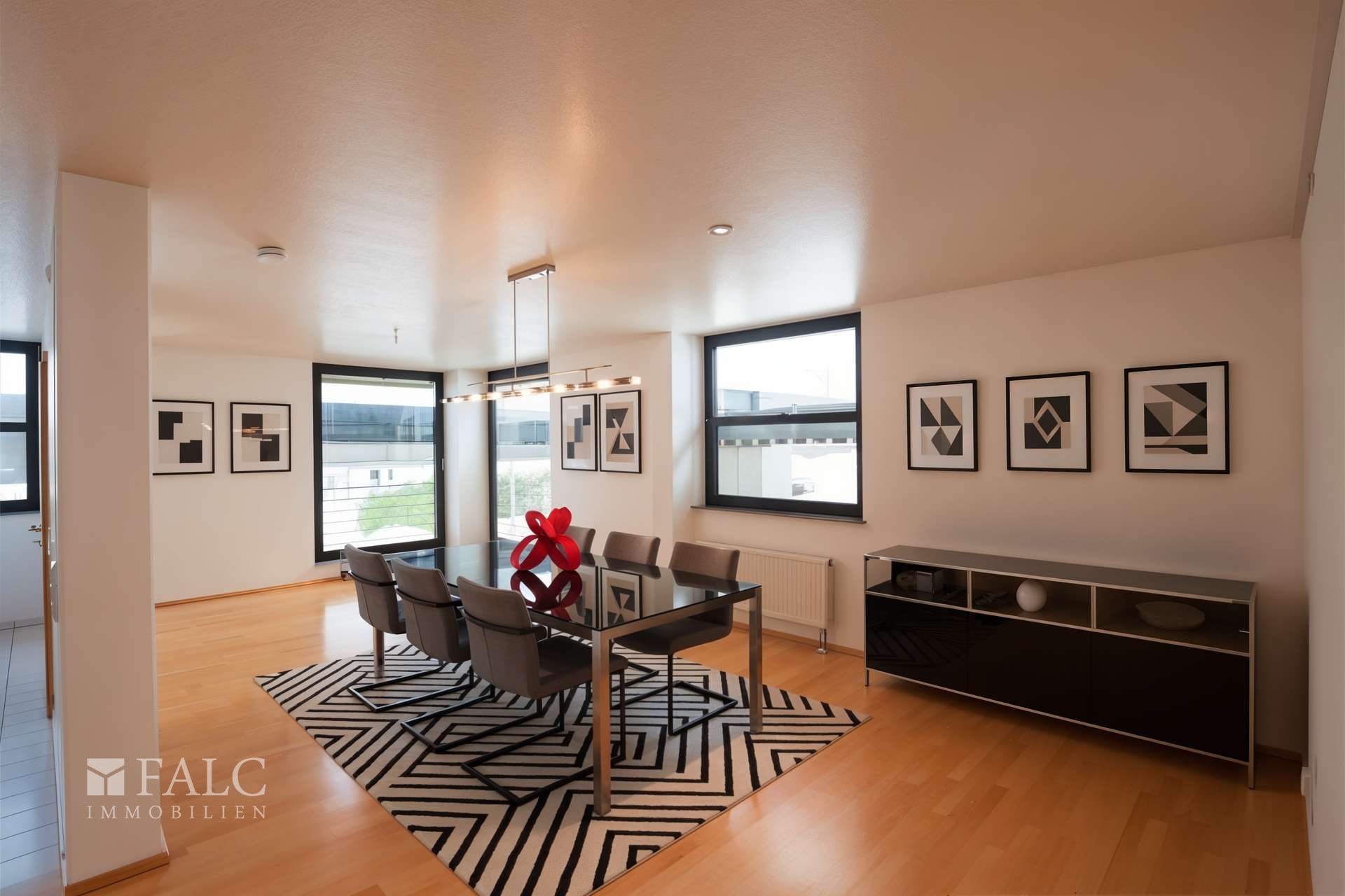 WohnbereichSchlafzimmer - MöblierungsbeispielSchlafzimmerEssbereich - Büro - MöblierungsbeispielEssbereich - BüroKüche - Essbereich - BüroKochenoffener und großzügiger WohnbereichBlick in die Wohnung vom Essbereich - BüroEmpfangBlick vom WohnbereichFlurein großes Zimmer für vielerlei Nutzungein großes Zimmer für vielerlei Nutzungein Zimmer für - Gäste - Kinder- HobbysHauswirtschaftsraumBadezimmer mit Wanneund DuscheAussicht aus der Wohnung nach NordenAussicht vom Balkon nach Westen - (KI generiert)Nord-AnsichtOst-AnsichtLageplanGrundrissWohnbereich - Möblierungsbeispiel