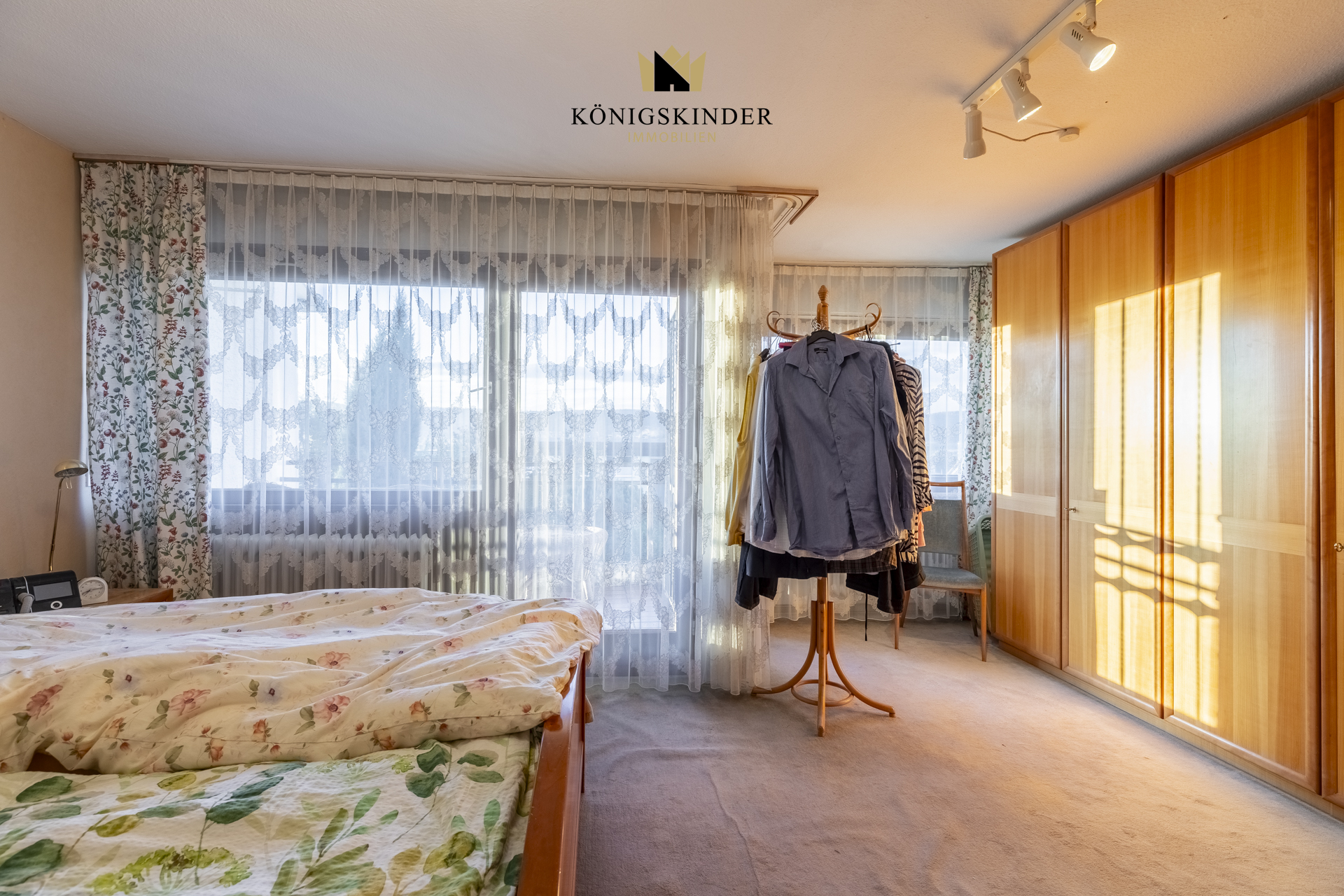 Im Obergeschoss stehen Ihnen drei Zimmer zur Verfügung - zwei nach Osten, das Schlafzimmer mit Balkon nach Westen. Hier ist anzumerken, dass aus ehemals zwei Zimmern das große Schlafzimmer gestaltet wurde - dies ist auch wieder zurückzuführen in zwei kleine Zimmer, sodass Ihnen danach vier Zimmer zur Verfügung stehen.