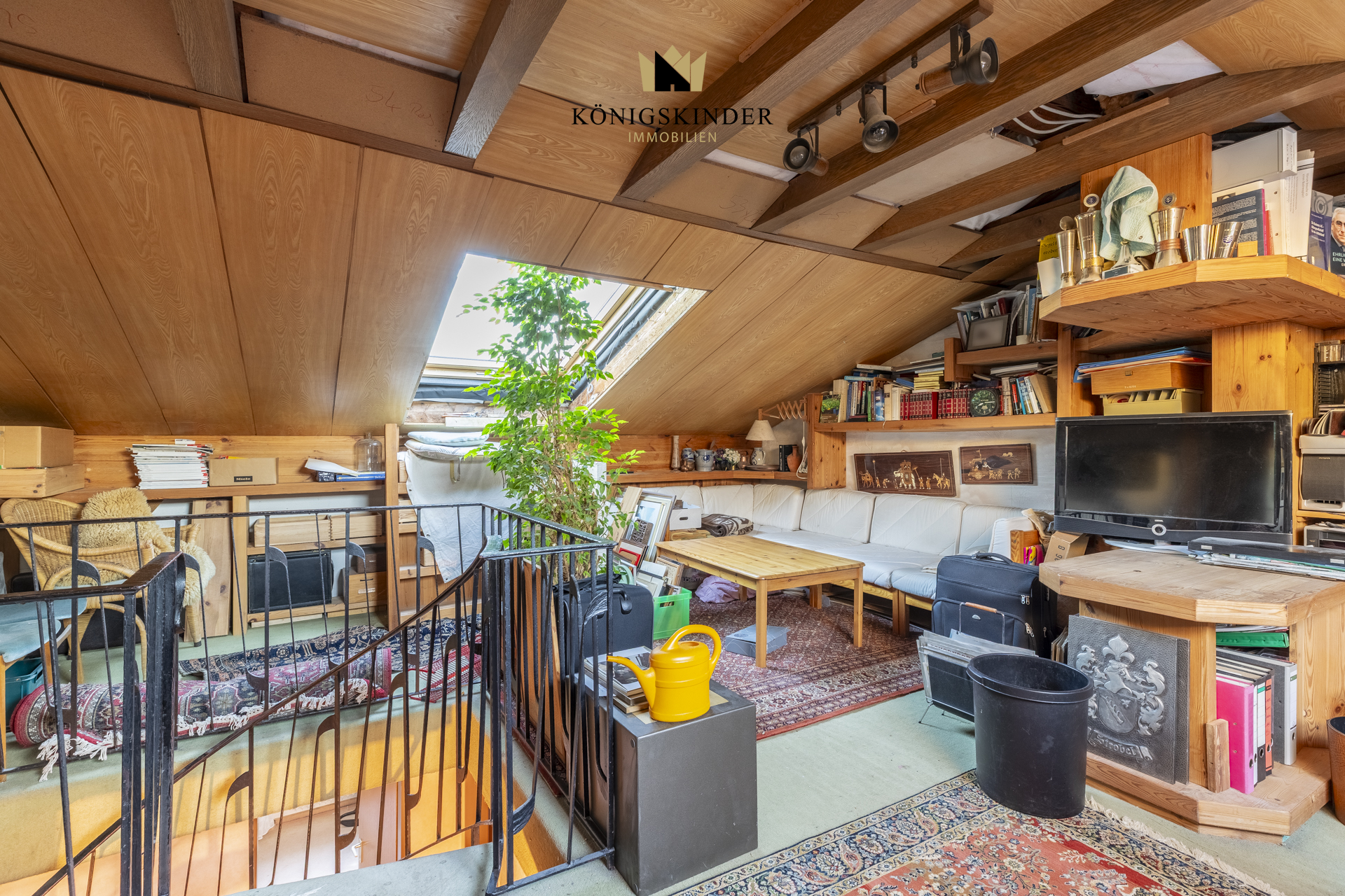 Über eine Wendeltreppe kommen Sie ins offen gestaltete Dachgeschoss, das wohnlich ausgebaut wurde und für ein Homeoffice oder Gästezimmer jederzeit zu nutzen ist. Es ist nicht in der Wohnflächenangabe enthalten; dort stehen Ihnen etwa 30 m² zur Verfügung.