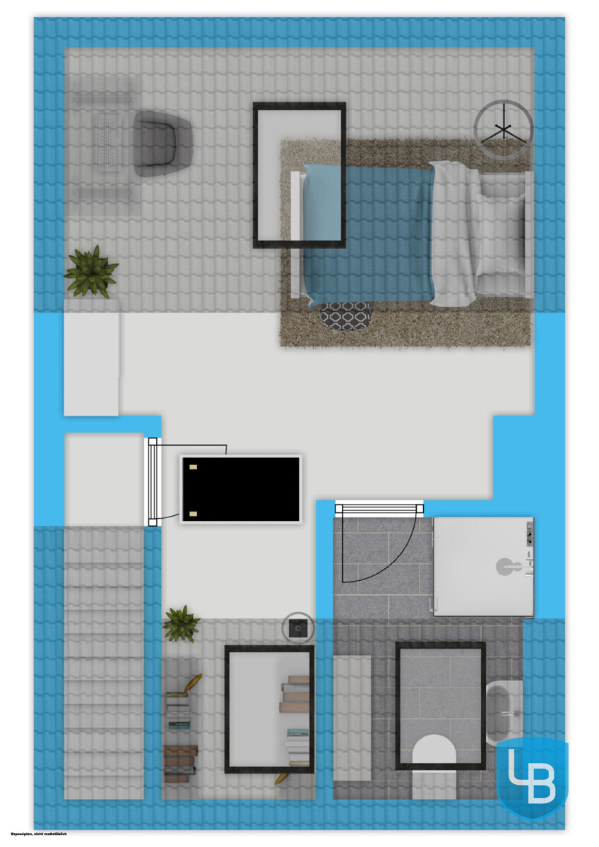 Das Obergeschoss bietet Ihnen ein Schlafzimmer sowie ein Bad mit Badewanne und Dusche.