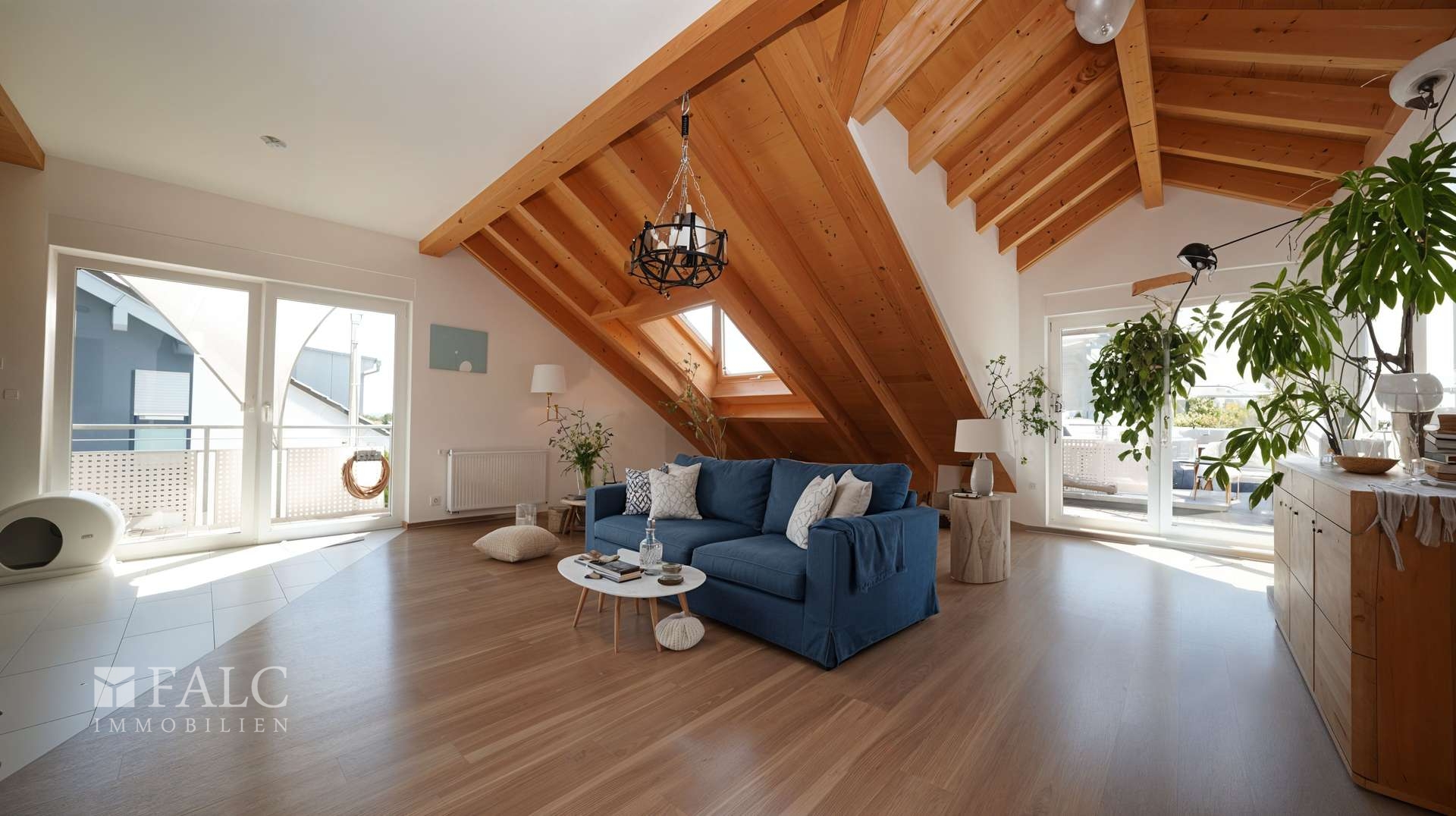 Über das Treppenhaus erreichen Sie das Dachgeschoss, in dem sich die Wohnung befindet. Bereits beim Eintreten wird man von einem großzügigen, lichtdurchfluteten Wohnbereich empfangen. Auf rund 40 m² bietet dieser Raum ausreichend Platz für eine gemütliche Wohnlandschaft, einen großen Esstisch sowie eine offene, moderne Einbauküche, die im Kaufpreis inbegriffen ist. Die großzügige Gestaltung verleiht dem Raum eine angenehme Offenheit und lädt zum Verweilen ein.