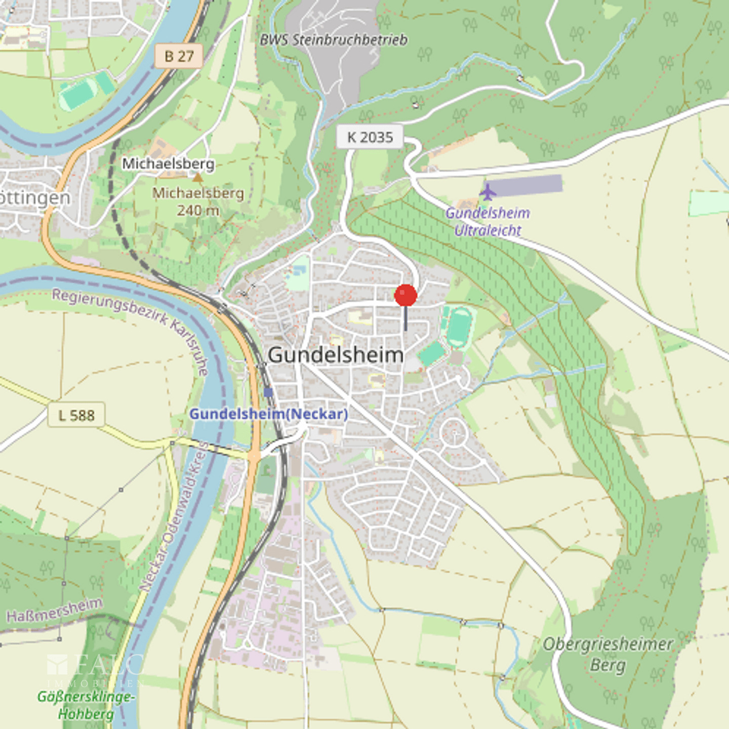 Gundelsheim am Neckar ist eine charmante Kleinstadt im Landkreis Heilbronn in Baden-Württemberg mit rund 7.500 Einwohnern. Eingebettet zwischen Weinbergen und dem Neckar, bietet der Ort eine attraktive Mischung aus ländlicher Ruhe und guter Erreichbarkeit größerer Städte wie Heilbronn und Mosbach. Die verkehrstechnische Anbindung ist durch die Bundesstraße B27 sowie den Regionalbahnhof gewährleistet, der regelmäßige Verbindungen in die umliegende Region bietet.