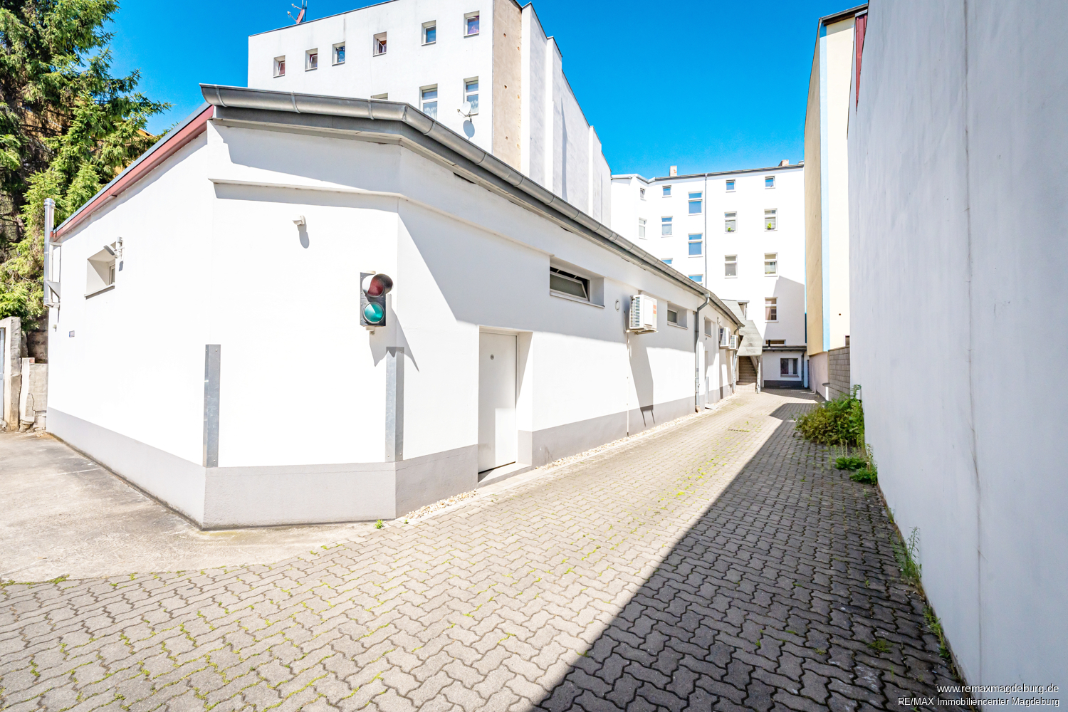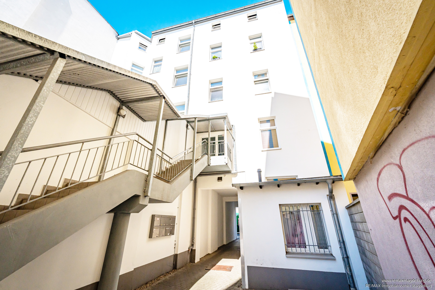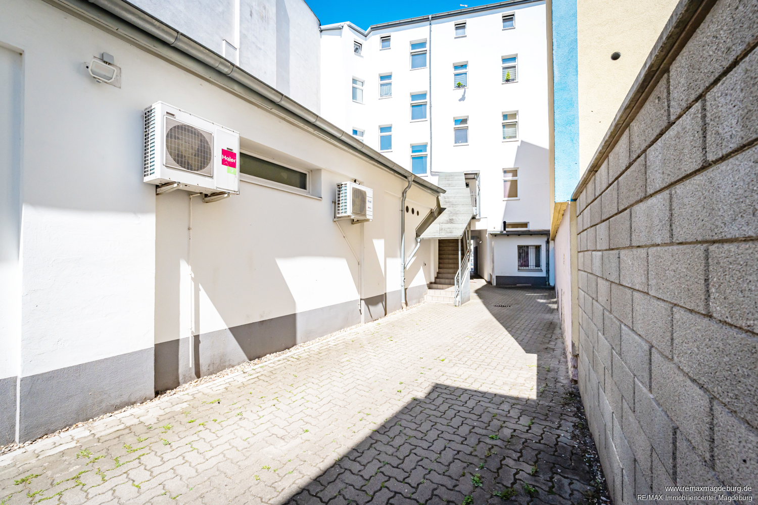 Diese teilt sich in sechs Wohneinheiten mit einer vermietbaren Gesamtwohnfläche von ca. 446 Quadratmetern und zwei Gewerbeeinheiten im Erdgeschoss des Hauses, mit einer vermietbaren Gewerbefläche von ca. 380 Quadratmetern. Das Gebäude wurde in den letzten Jahren umfassend modernisiert. Die Modernisierung umfasst die Erneuerung der Heizungsanlage, der Außenfassade und des Treppenhauses. Das Gebäude verfügt über einen Kriechkeller, der ausschließlich der Unterbringung der Hausanschlüsse und Zähler dient. Abstellmöglichkeiten für die Mieter befinden sich im Dachgeschoss.