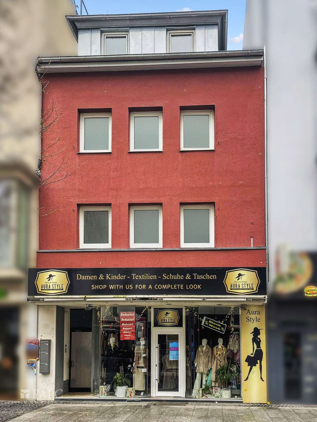 Zum Verkauf steht ein gepflegtes Wohn- und Geschäftshaus in der 1A Lage der Eschweiler Fußgängerzone. Das Gebäude verfügt über zwei Etagen und ein ausgebautes Dachgeschoss, ist voll unterkellert und wurde im Jahr 2022 zuletzt in weiten Teilen modernisiert. Das Haus bietet insgesamt ca. 434 m² Wohn- und Gewerbefläche auf einem Grundstück von ca. 332,5 m². Das Ladenlokal umfasst 148 m2; die Wohnungen im 1 OG und 2 OG jeweils 108 m2; die Dachgeschosswohnung 70 m2. Zudem bietet ein Anbau ca. 80 m2 Ausbaupotenzial. Das Gebäude ist bereis in vier Einheiten aufgeteilt, diese werden als Paket veräußert. Es befindet sich insgesamt in einem guten Zustand und ist aktuell vollständig vermietet, mit einer jährlichen Mieteinnahme von über 46.000€ lässt sich eine Rendite von über 7,5% erzielen. Mit Faktor 13 ein hochinteressantes Anlageobjekt.