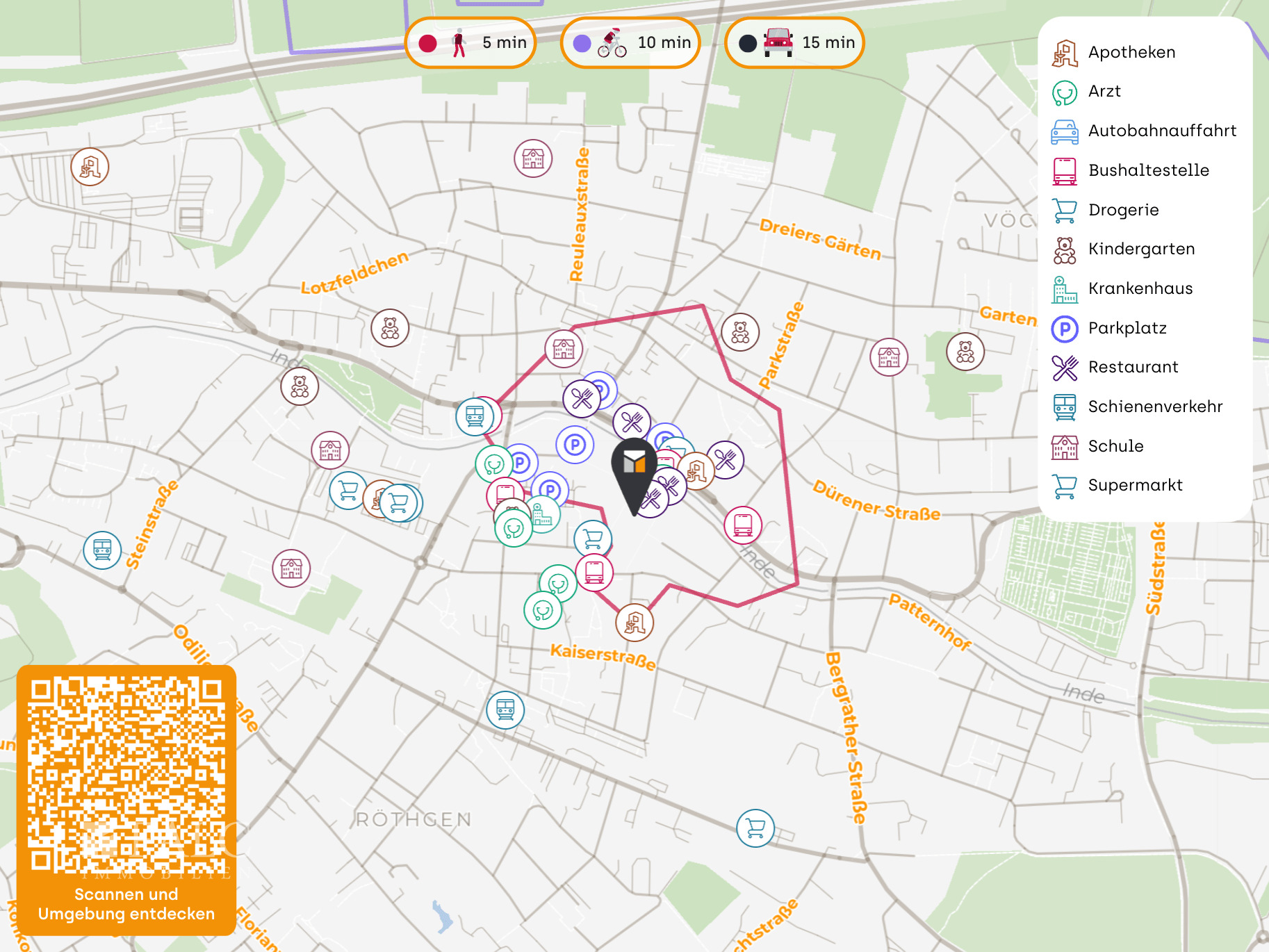 Die wichtige Fußgängerzone bietet die direkte Anbindung an das pulsierende Leben der Stadt. Alle Angebote, die das tägliche Leben erleichtern und ein gutes Umfeld für Geschäftsbetriebe garantieren befinden sich in der direkten Umgebung. Besonders hervorzuheben sind das Stadt-Apotheke, nur ca. 20 m entfernt, ein wichtiger Punkt für die Gesundheitsversorgung und Lieferdienste. Ein weiterer zentraler Punkt ist der Netto Marken-Discount in ca. 100 m Entfernung, der eine bequeme Versorgung mit Lebensmitteln und Haushaltswaren sicherstellt. Nur wenige Schritte weiter, etwa 210 m entfernt, befindet sich das Sankt Antonius Hospital, welches nicht nur für die medizinische Versorgung von Bedeutung ist, sondern auch ein hohes Verkehrsaufkommen erzeugt und damit Potenzial für Geschäftstätigkeiten eröffnet.