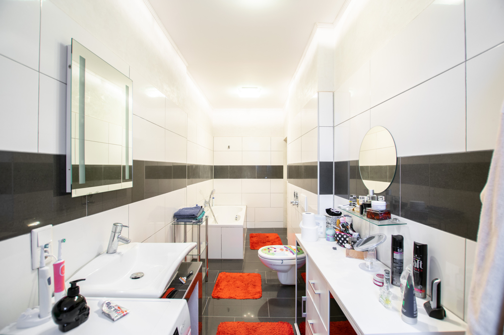 1.OG 3-Zimmer Wohnung mit Essküche, Badezimmer und Flur 2-Zimmer Wohnung mit Essküche, Badezimmer, Abstellraum und Flur