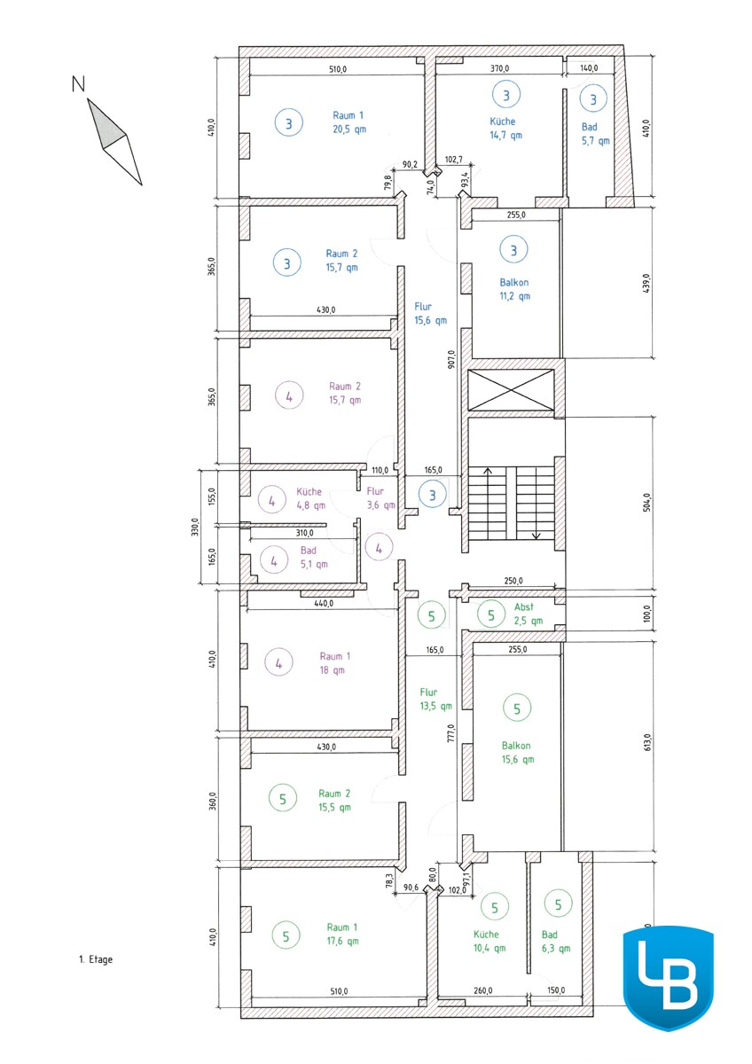 AUFTEILUNG 1. OBERGESCHOSS: + 3 x 2-Zimmer-Wohnung - vermietet
