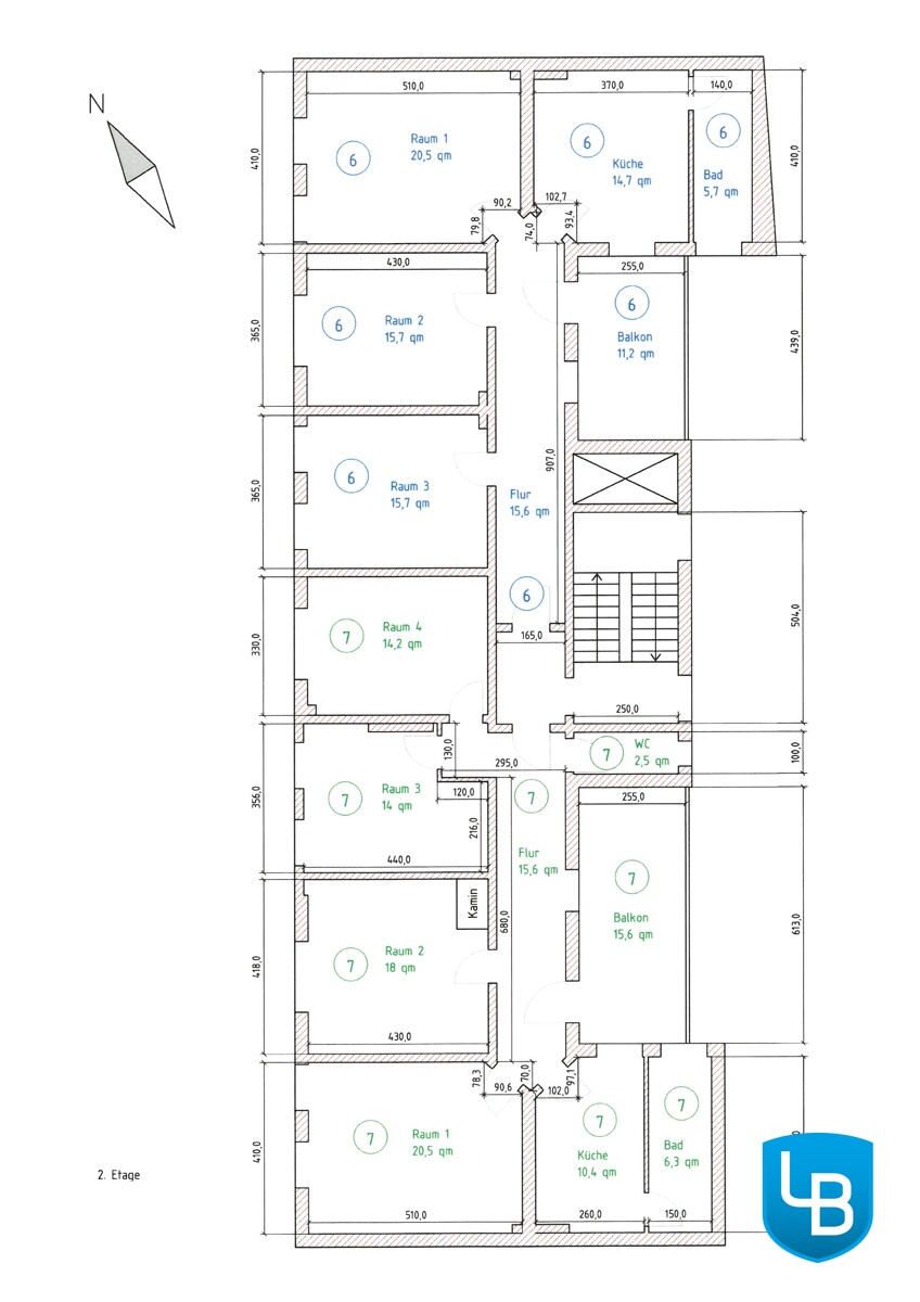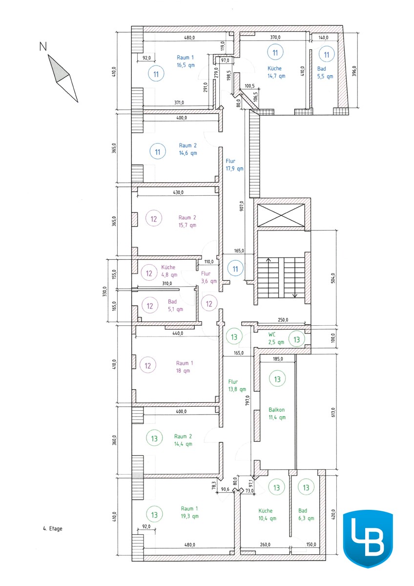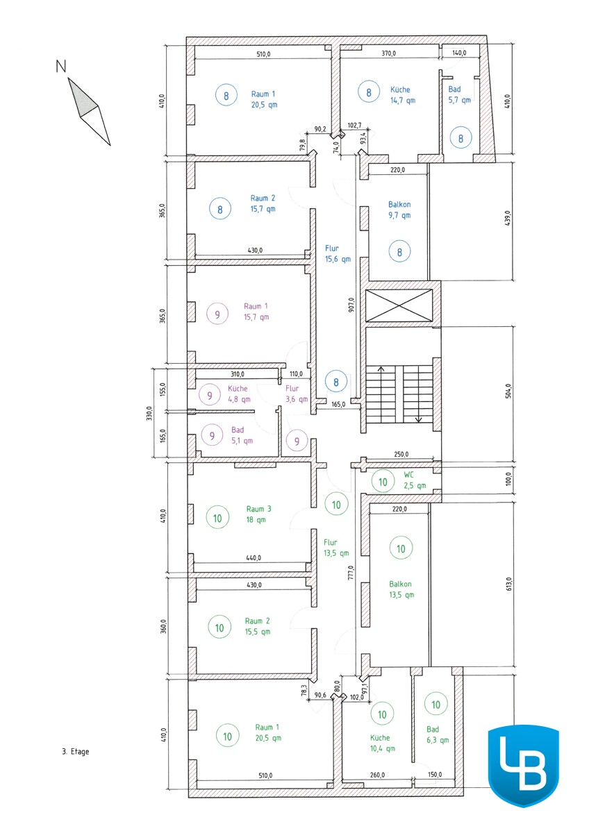 AUFTEILUNG DACHGESCHOSS: + 3 x 2-Zimmer-Wohnung - vermietet