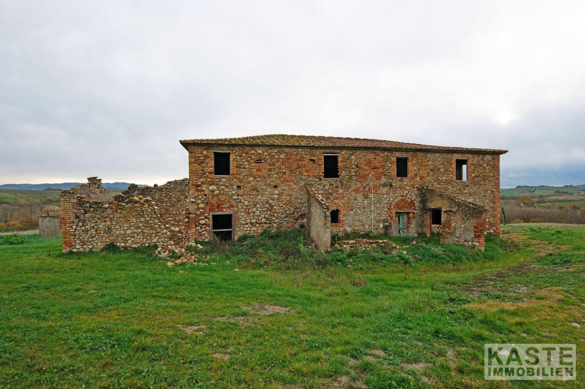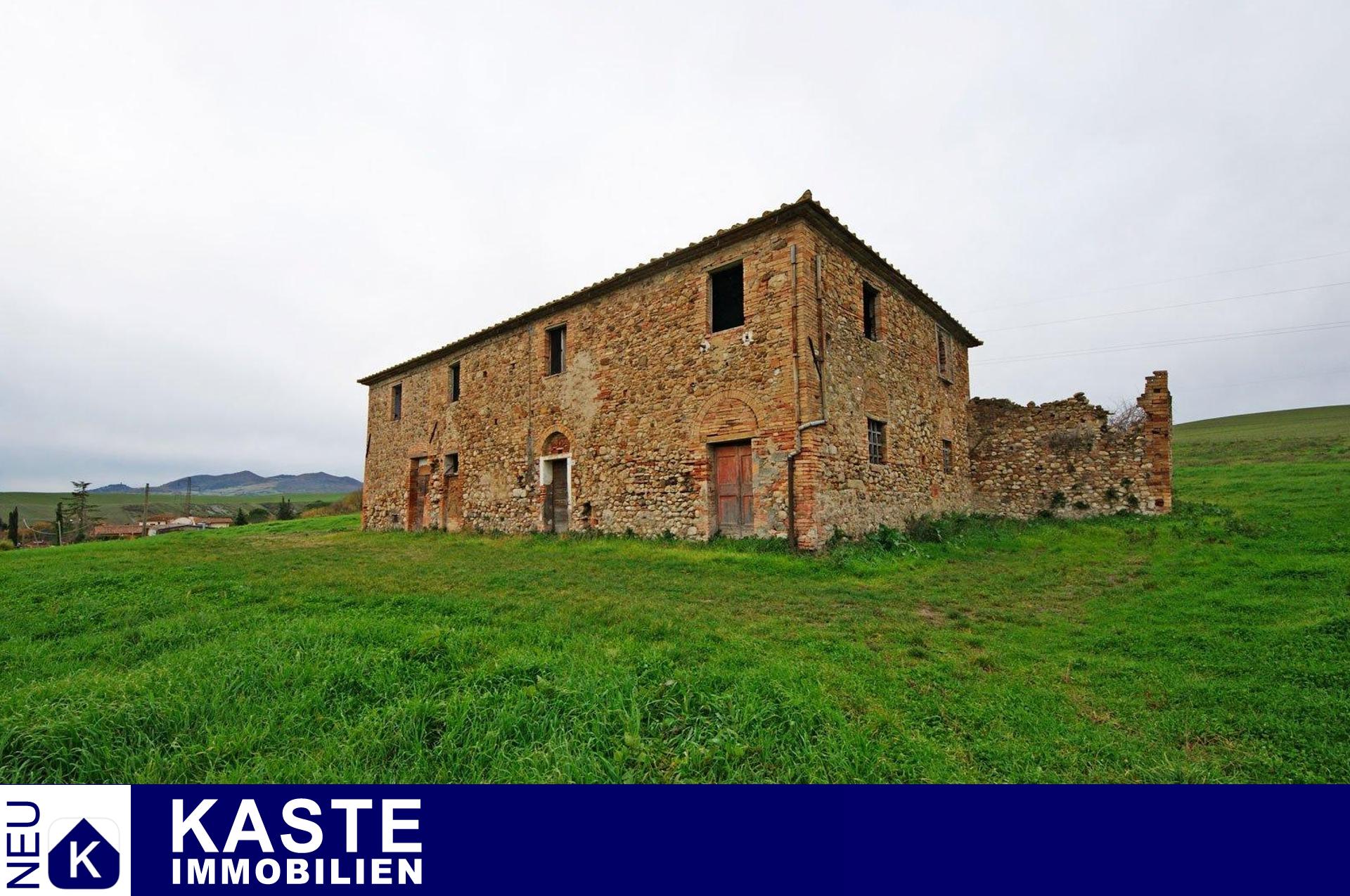 Wunderschönes charakteristisches Landhaus im Ortsteil Lajatico in Italien. Das Anwesen besteht aus 44.000 qm Land, das ein 500 qm großes Haupthaus umgibt, plus 2 Nebengebäude von 50 und 20 qm. Das Haupthaus ist restaurierungsbedürftig, aber es gibt viel wiederzuverwenden, wie die Böden und die originalen Decken, die nach einer guten Restaurierung die schöne Atmosphäre im Haus erhalten. Die alten Ställe können heute als große Wohnräume mit einem großen offenen Raum mit den originalen Gewölbedecken wiederverwendet werden. Und die originale Tränke kann zu schönen Sitzgelegenheiten werden. Das Äußere des Hauses ist in gutem Zustand und außerdem gibt es 2 Nebengebäude, die umgebaut werden können. Es ist möglich, einen Swimmingpool zu bauen.
